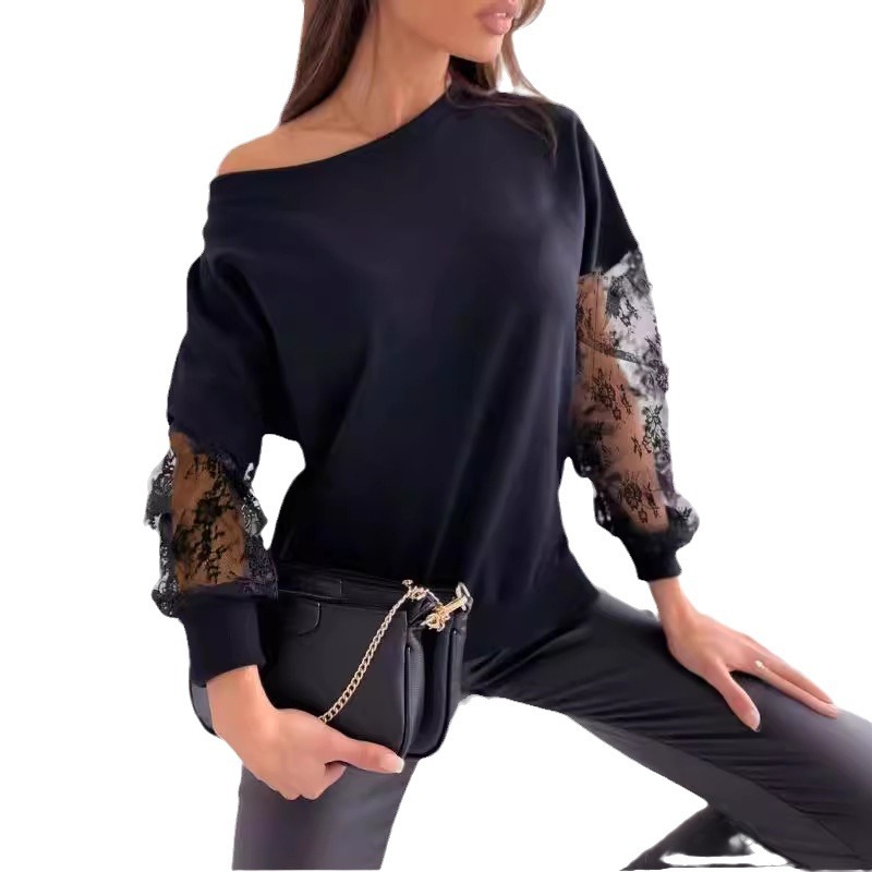 | nameOriginal | 2024 foreign trade women's clothing European and American European Station Amazon cross-border spring and summer solid color lace stitching long-sleeved T-shirt |