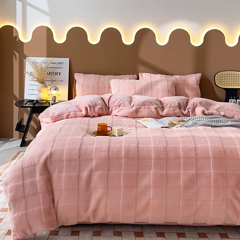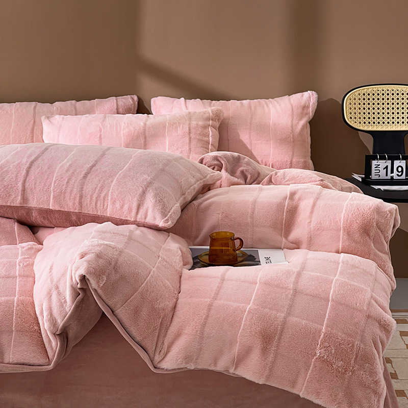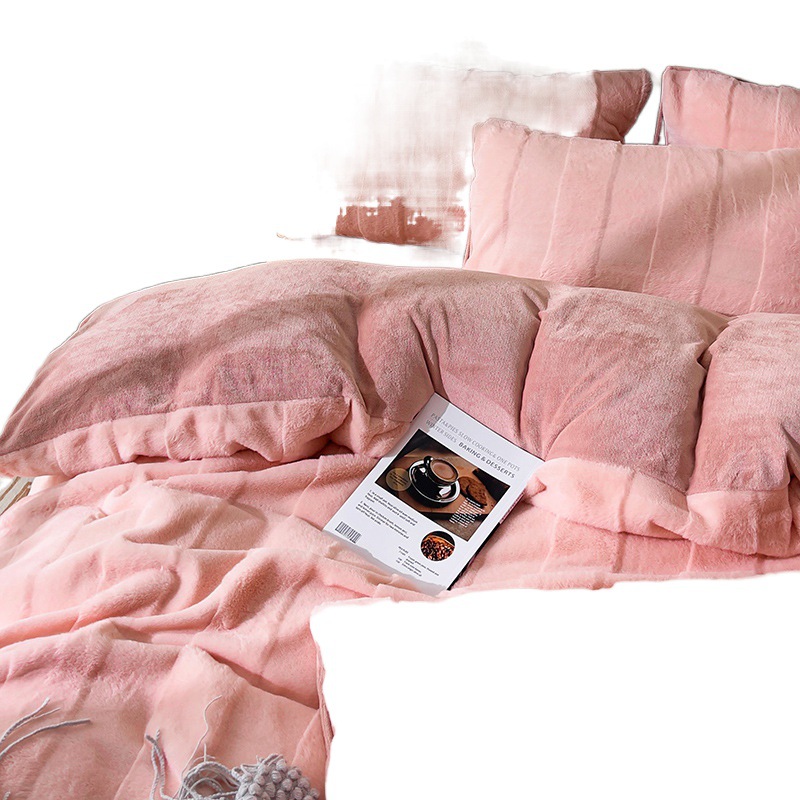 2024 four-piece set rex rabbit fur imitation leather cut flower milk velvet rabbit velvet rabbit fur big square-sweet pomelo powder