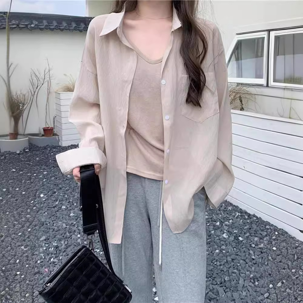 | nameOriginal | 2024 French Ice Silk Sunscreen Shirt Women's Summer Silk Thin Shirt Wrinkle-resistant Long-sleeved Casual Top All-match Outer |