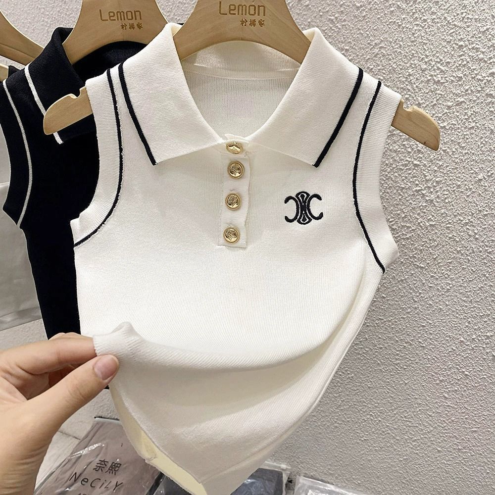 | nameOriginal | 2024 French Style Chanel Style Polo Collar Sleeveless Vest Women's Summer Design Sense Niche Short Outer Wearing Knitted Top |