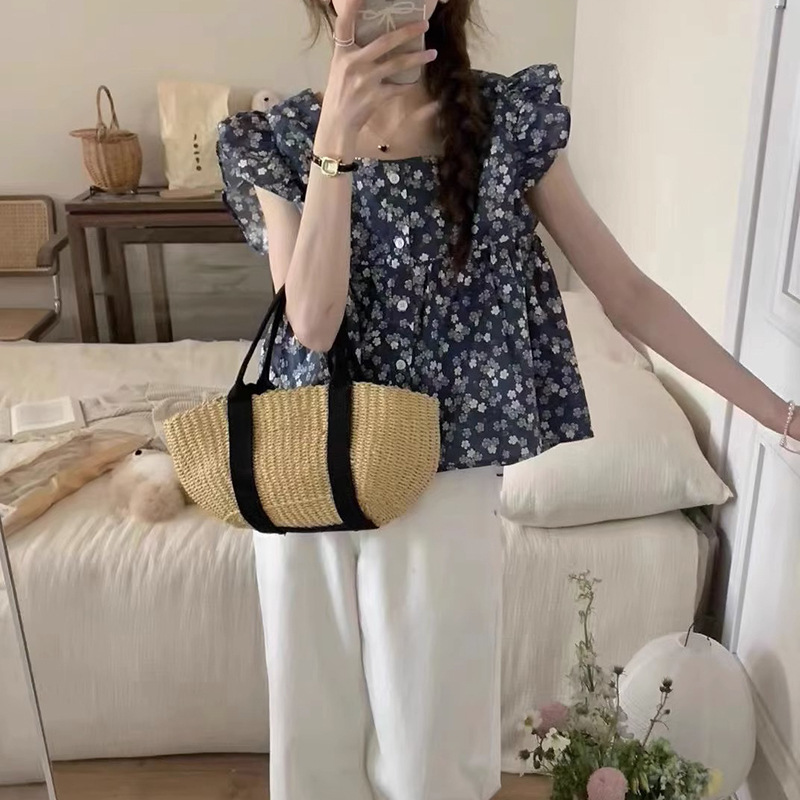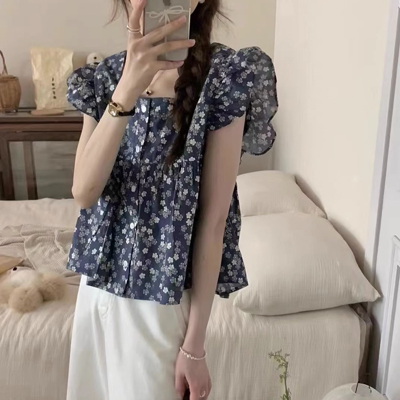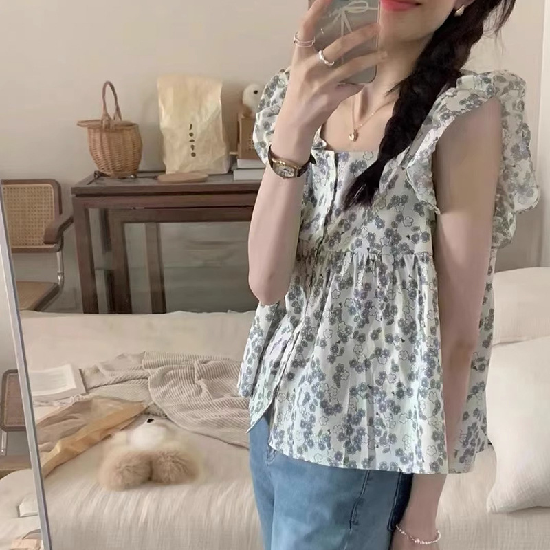 | nameOriginal | 2024 French style square collar sweet floral small flying sleeve shirt women's summer design sense small wear temperament top |