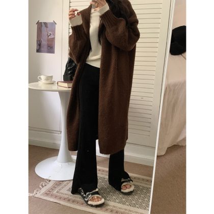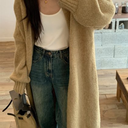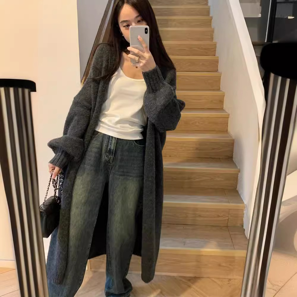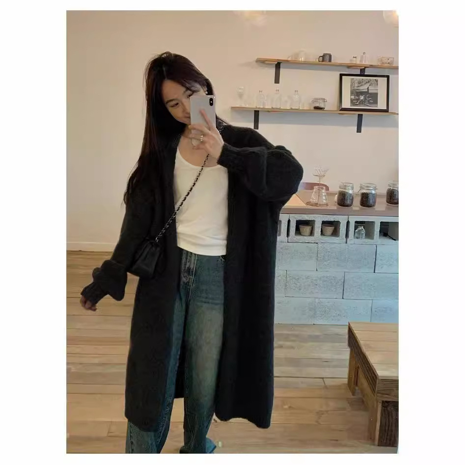 2024 Gentle Wind Soft Waxy Skin-friendly Knitted Cardigan Women’s Spring and Autumn Loose Mid-length Knee-length Solid Color Sweater Jacket