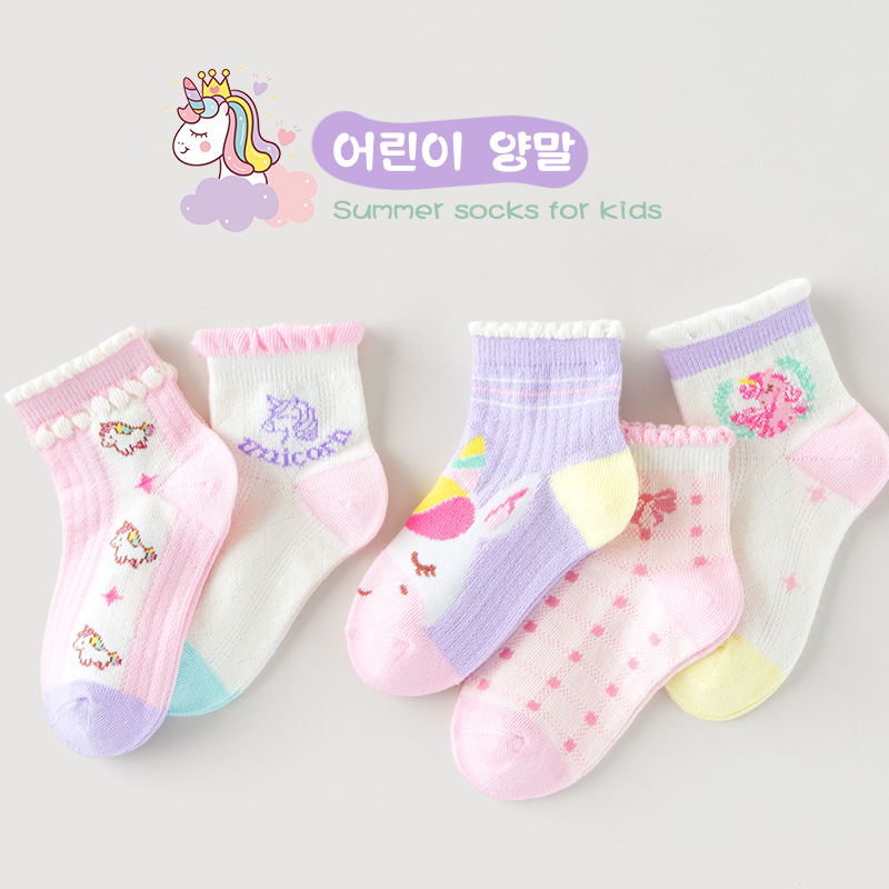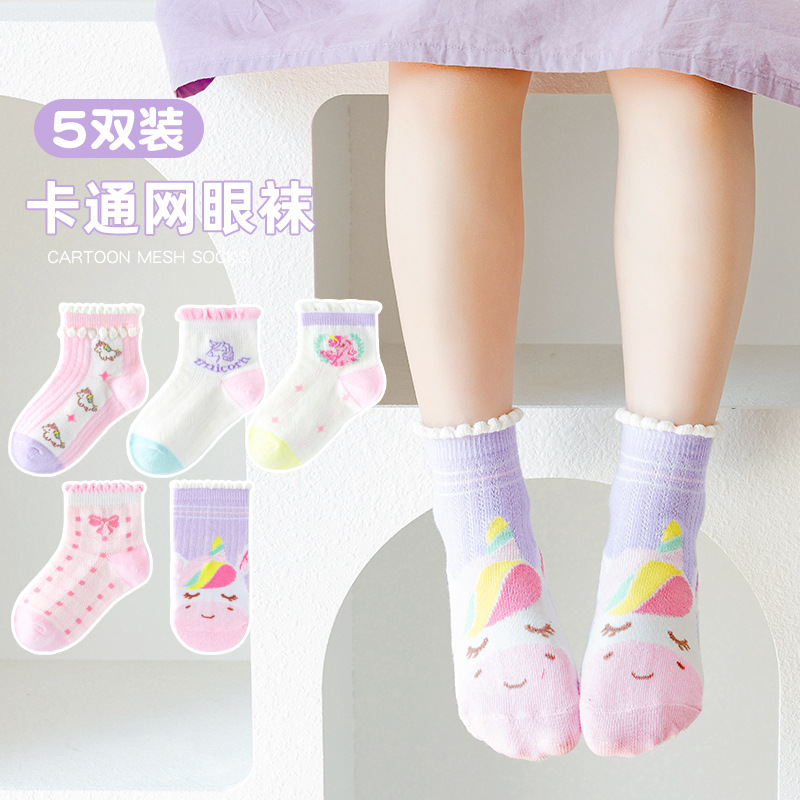 | nameOriginal | 2024 girls' socks spring and summer thin class A children's socks breathable cotton socks mesh unicorn lace girls' boat Socks |