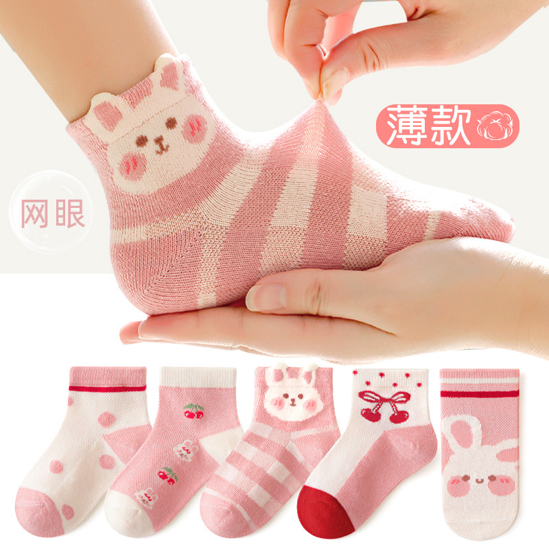 | nameOriginal | 2024 girls' socks summer thin children's cotton socks spring and summer mesh cute bunny girls' breathable socks wholesale |