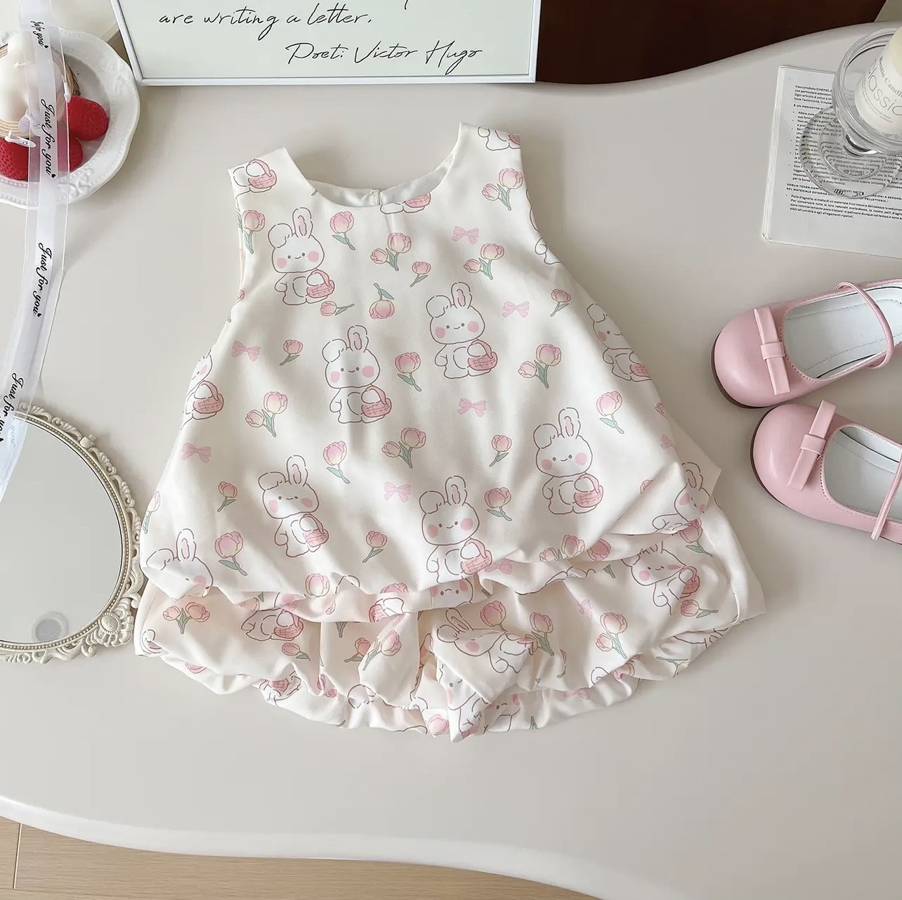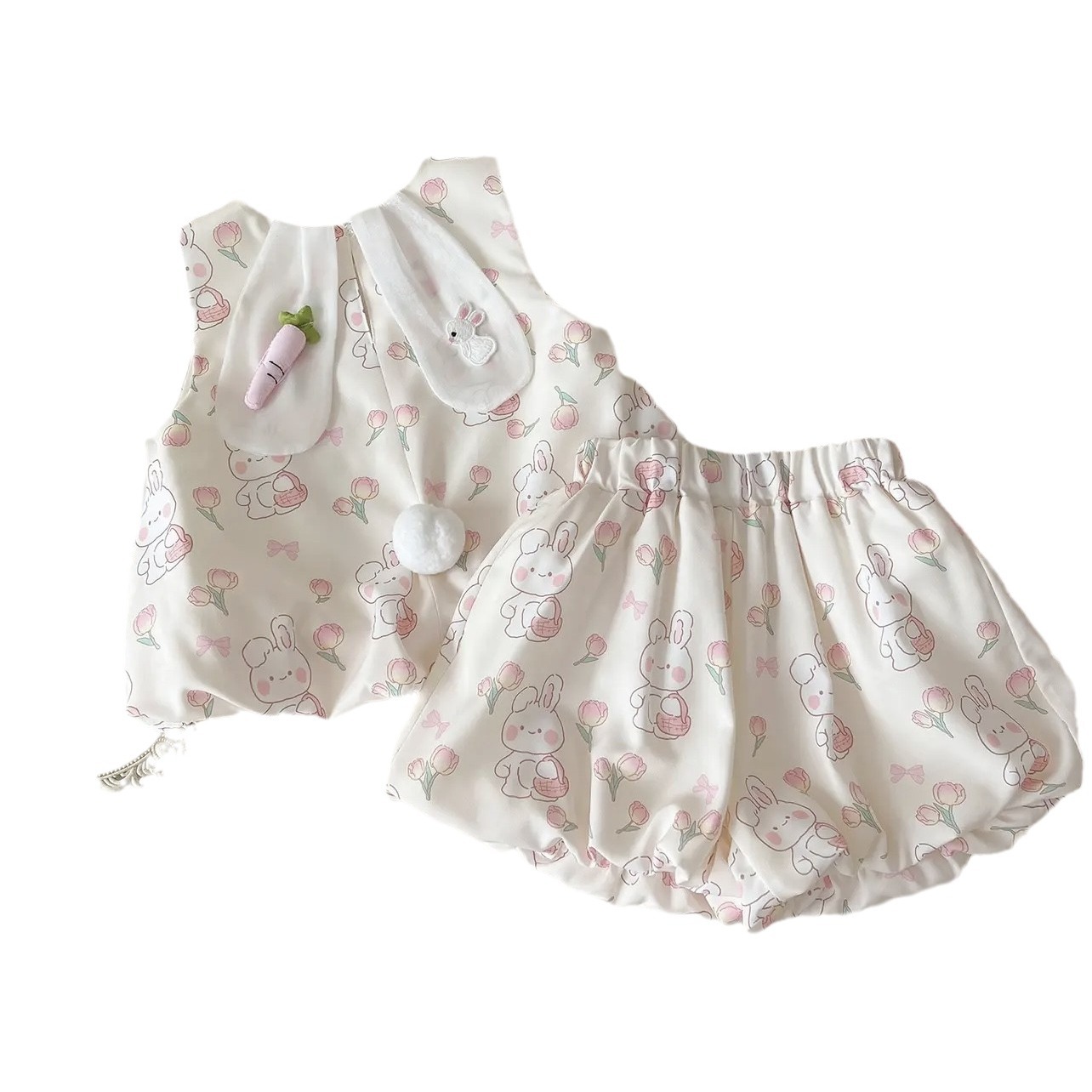 2024 Girls’ Summer New Korean Style Children’s Cute Bunny Jacket Pants suit Baby Girl Princess Style