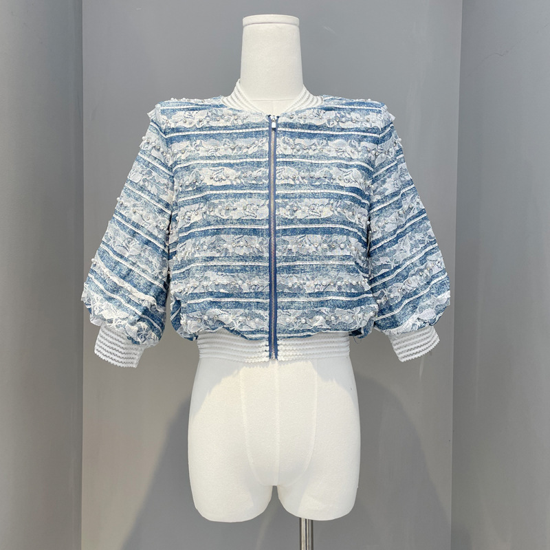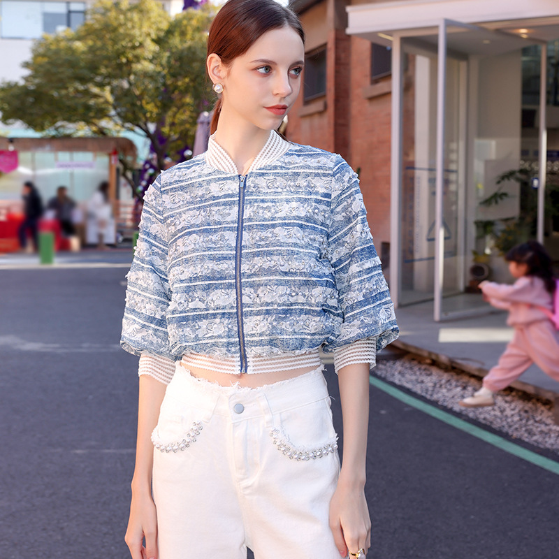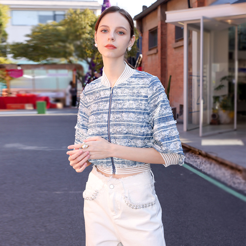 | nameOriginal | 2024 gold Madeline Chanel style high-end South oil three lines original high waist small Denim short coat for women |