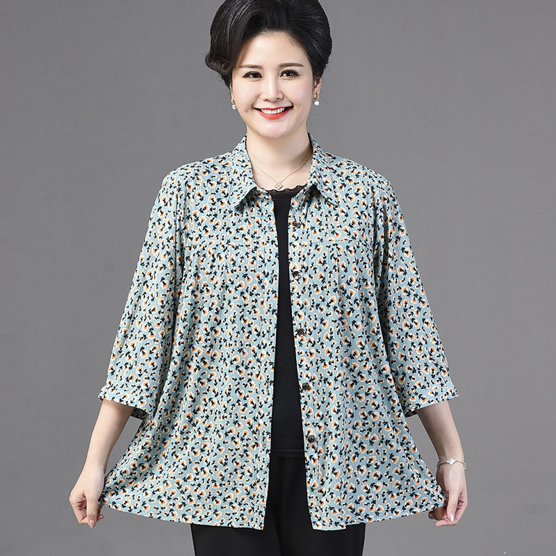 | nameOriginal | 2024 Grandma's New Summer Top Middle-aged and Elderly Seven-point Sleeve Fat Cardigan Fragrant Cloud Ice Cool Shirt 12XL Special Size Snow |