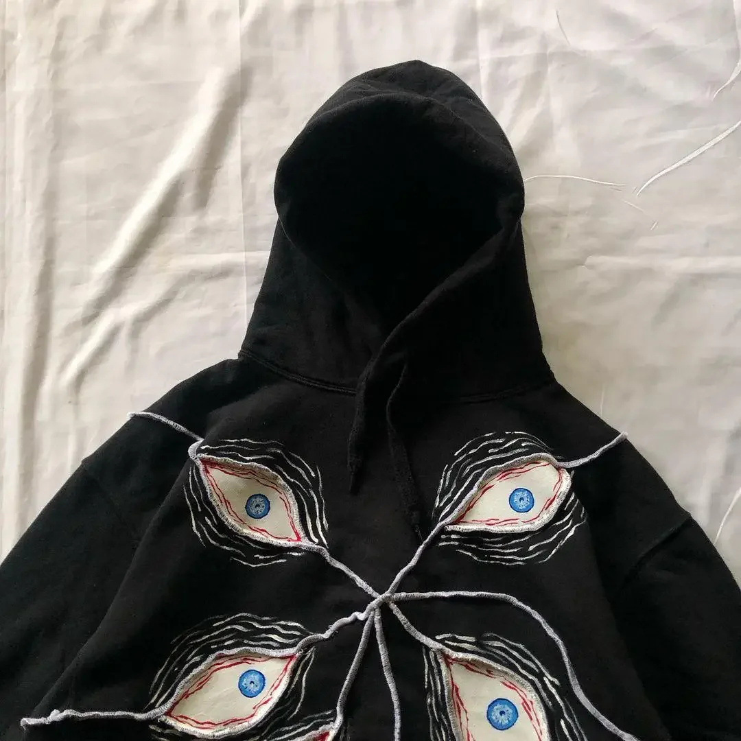 2024 Harajuku dark eye embroidered hoodie couple American street y2g gothic punk trend sweater