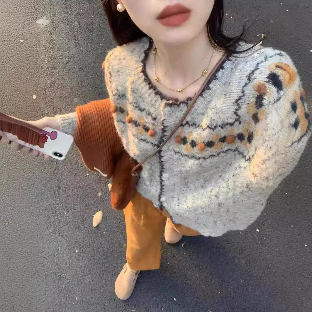 | nameOriginal | 2024 Heavy Industry Retro Sweater Coat Women's Autumn and Winter Soft Waxy Lazy Style Knitted Cardigan Design Sensei Top Clothes |