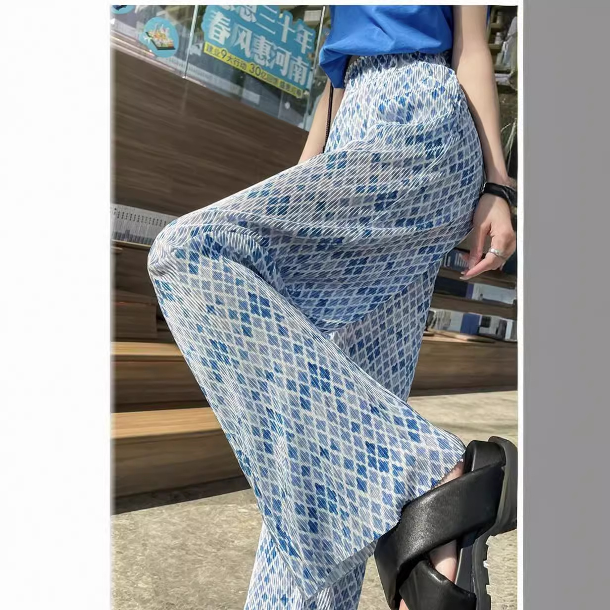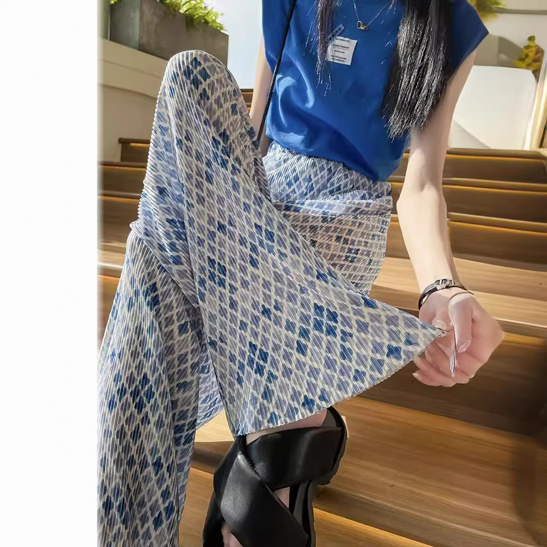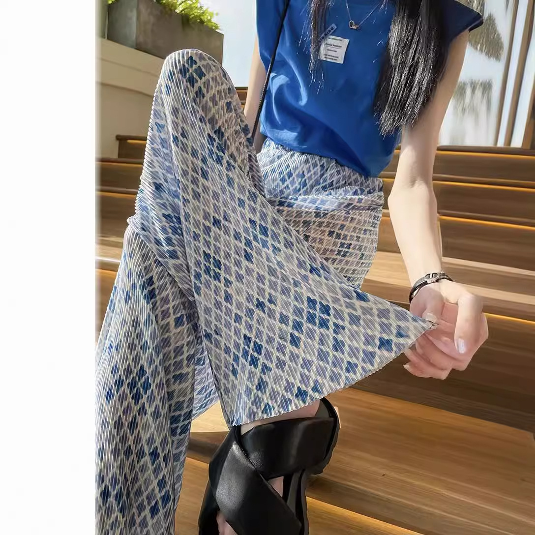 | nameOriginal | 2024 Ice Silk pleated wide-leg pants women's summer new high waist casual pants straight loose draping mop pants |