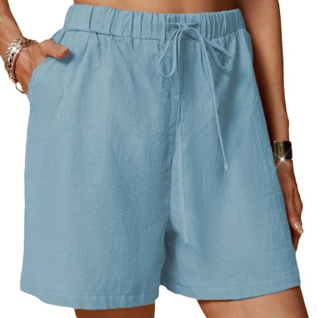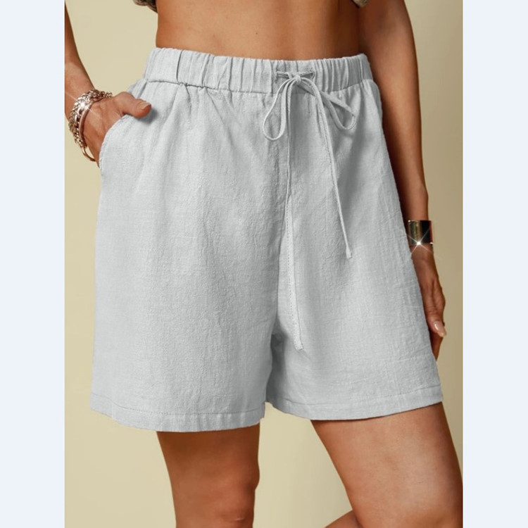 | nameOriginal | 2024 independent station wish Amazon new cotton and linen solid color loose casual elastic waist lace-up shorts for women |