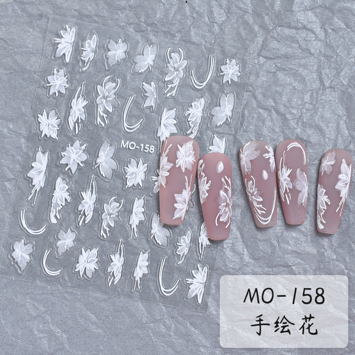 | nameOriginal | 2024 Internet celebrity new snow mowing nail stickers relief three-dimensional white hand painted small flower nail jewelry wholesale |
