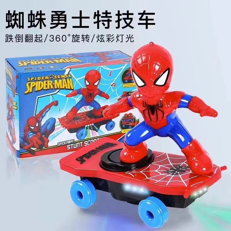 2024 Internet Popular Children's Large Spiderman Scooter Electric Stunt Flip Car with Sound and Light Kids Boy Toy