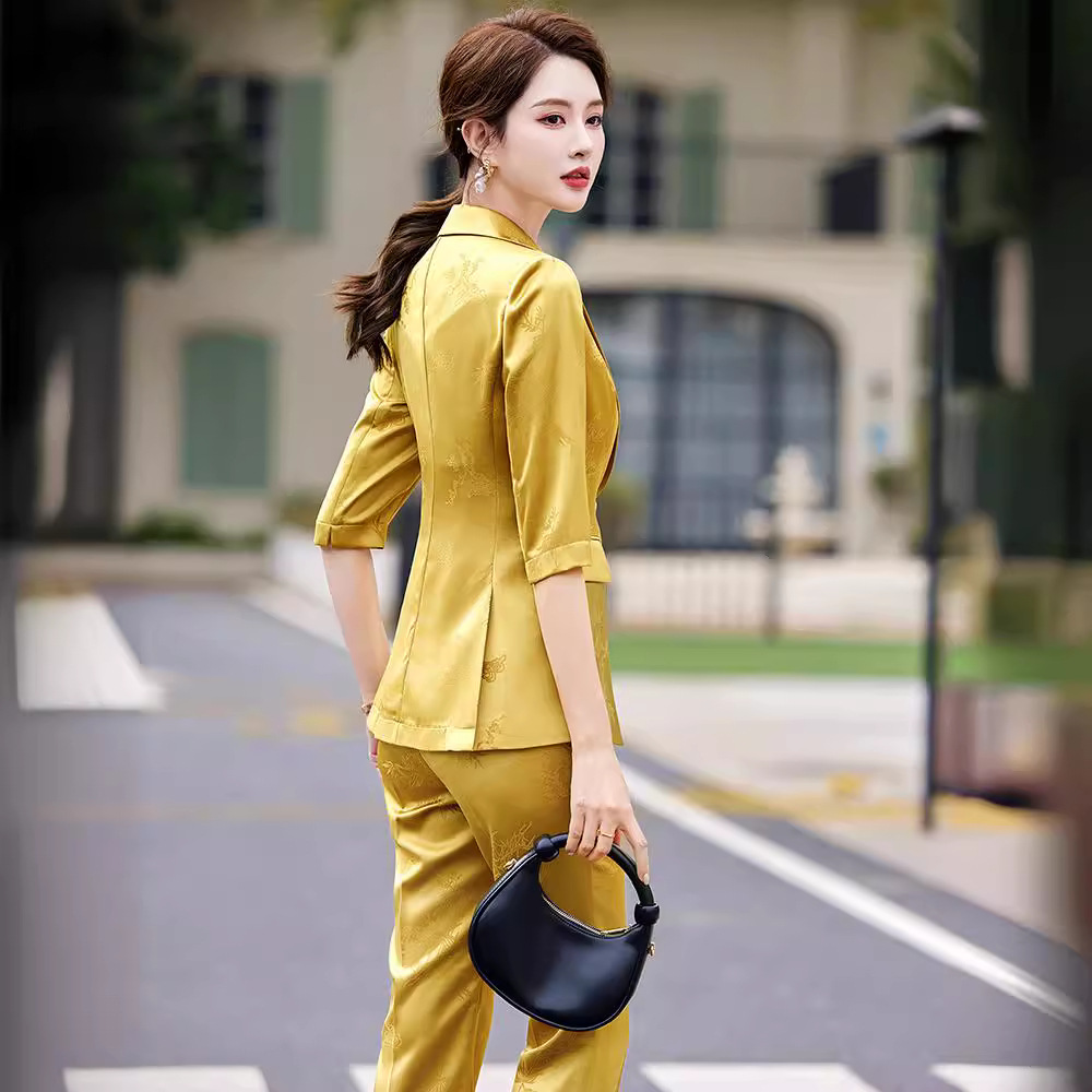 | nameOriginal | 2024 jacquard fabric women's clothing yellow suit professional suit women's spring and summer new thin rest fashion temperament goddess |