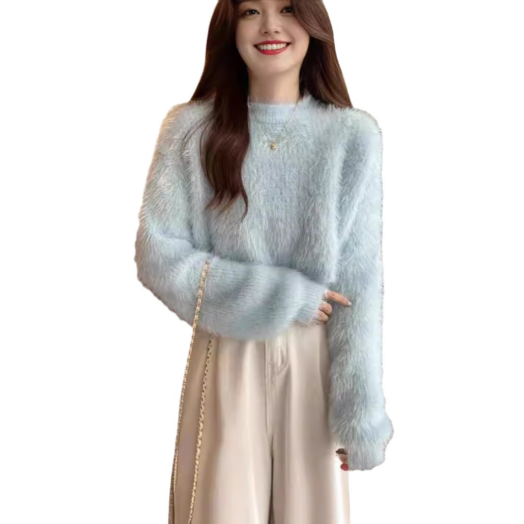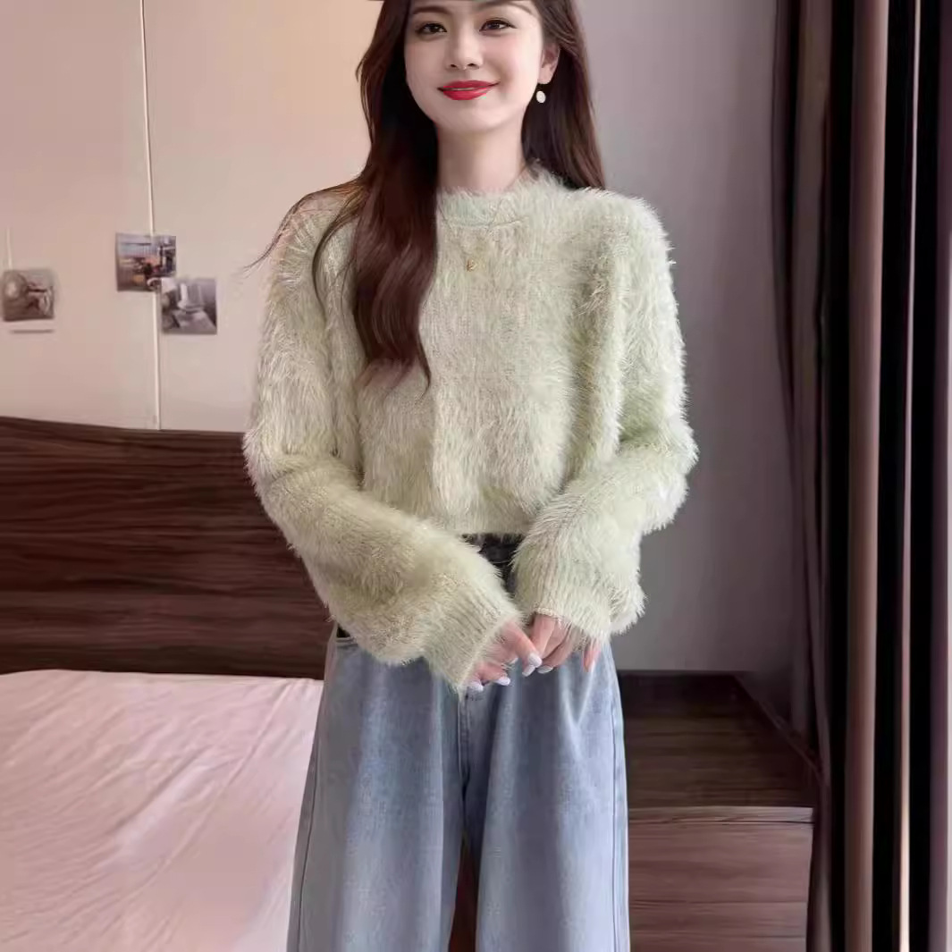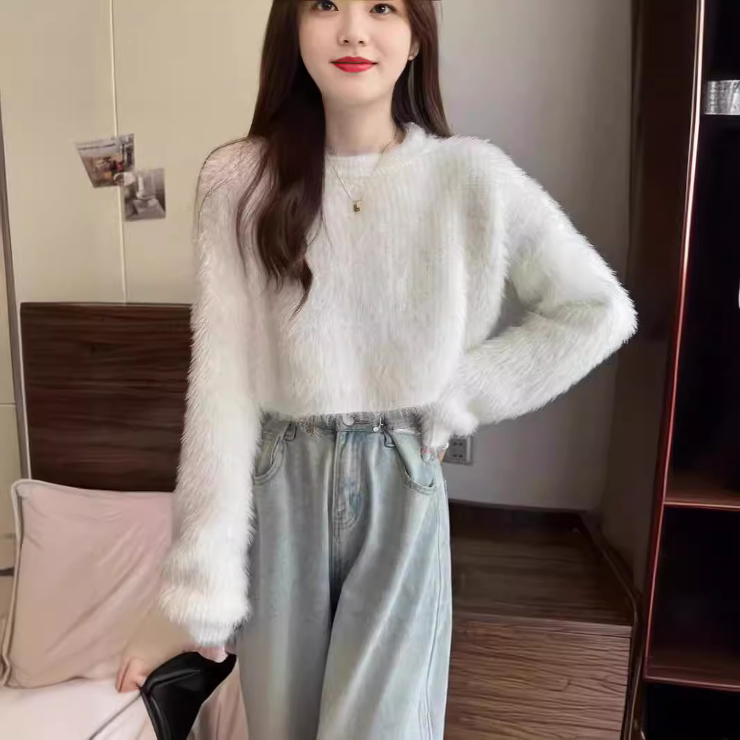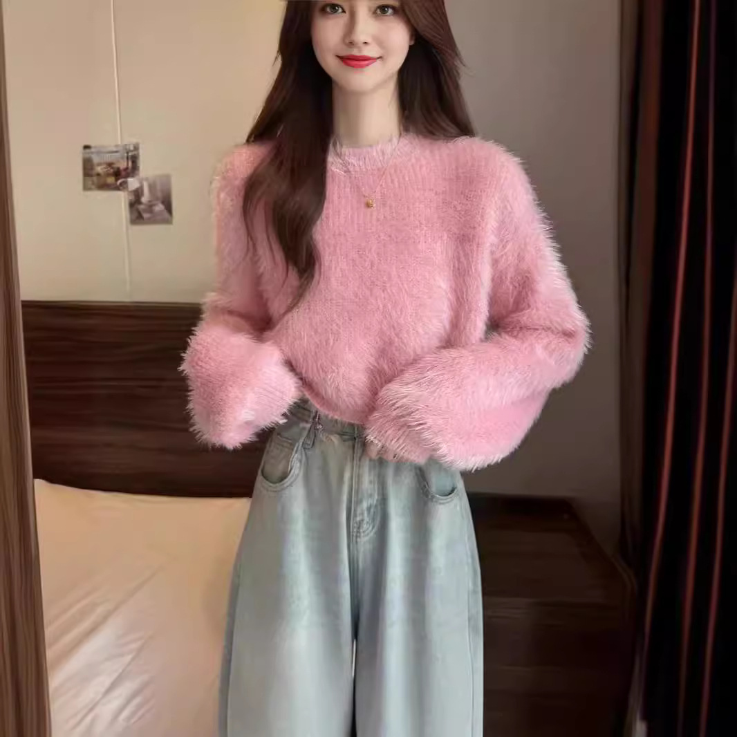 | nameOriginal | 2024 Korean Style Autumn and Winter New Sweet Style Pullover Crewneck Sweater Women's Loose Imitation Mink Velvet Knitted Top for Women |