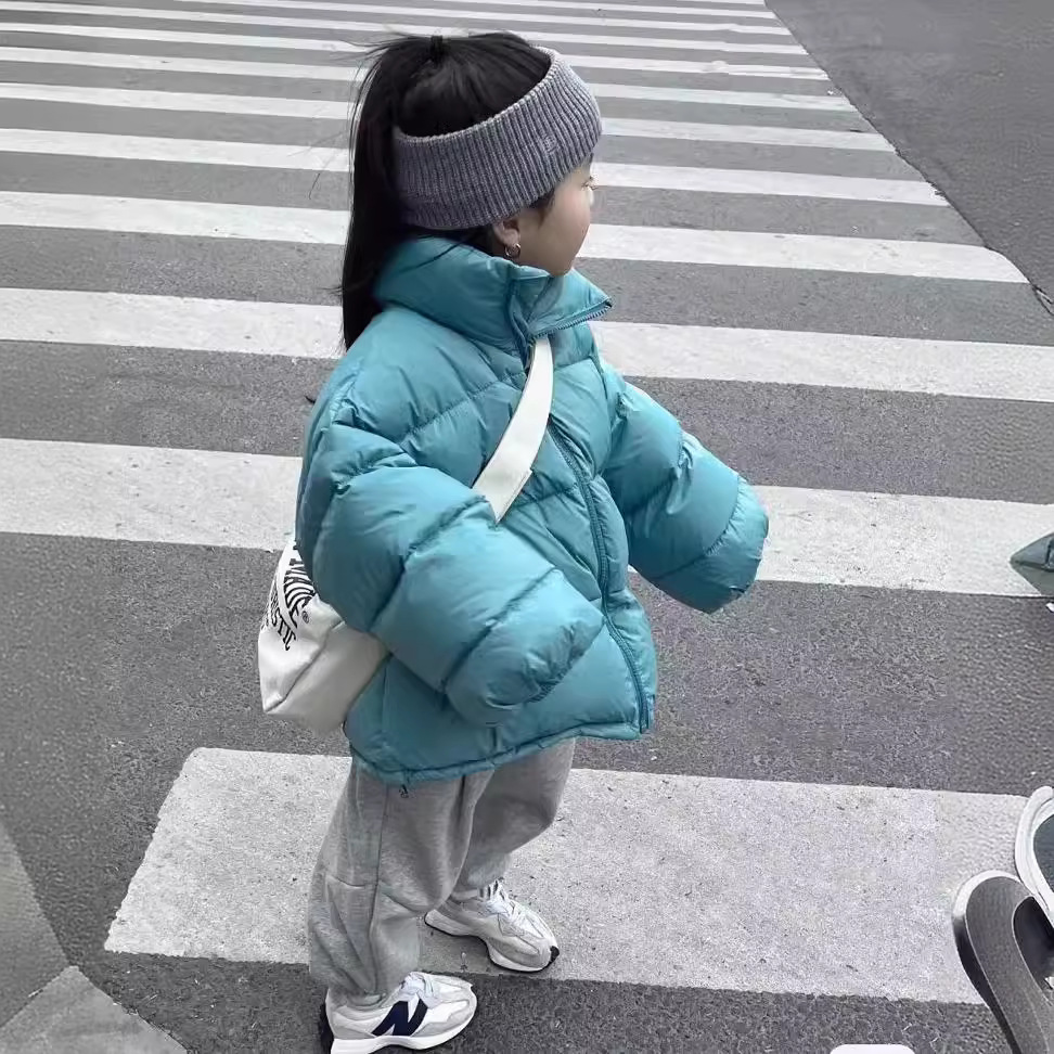 2024 Korean Style Children’s Collar Bread Suit Fashion Thickened Warm Autumn and Winter Cotton Coat Winter Solid Color Short Cotton Coat