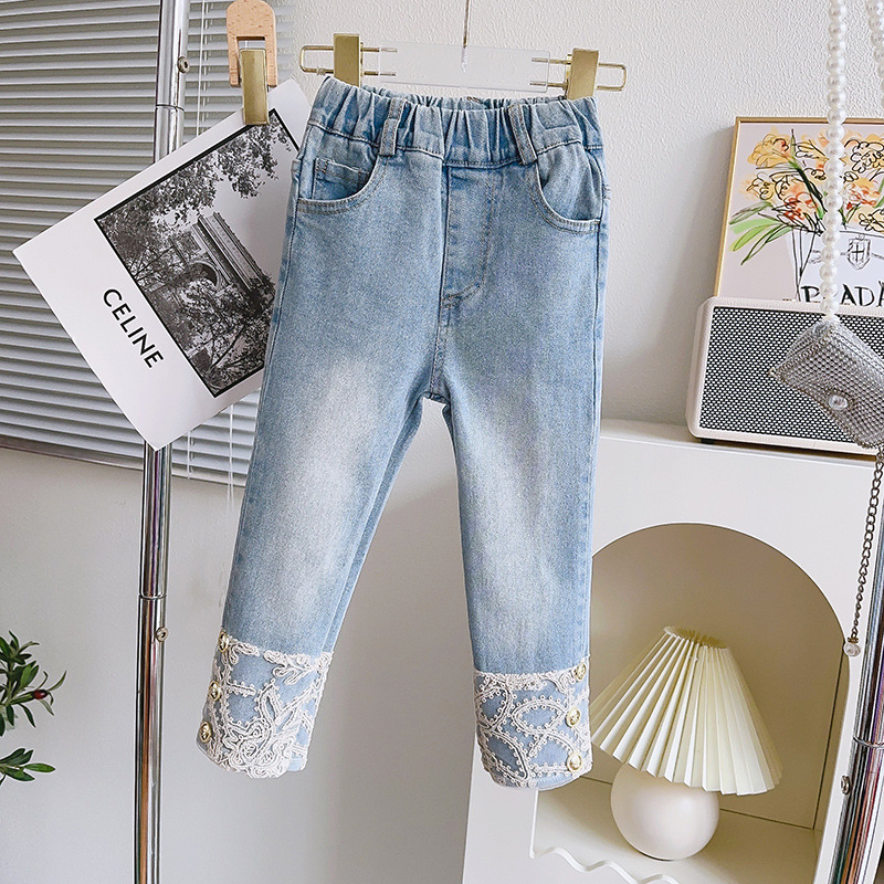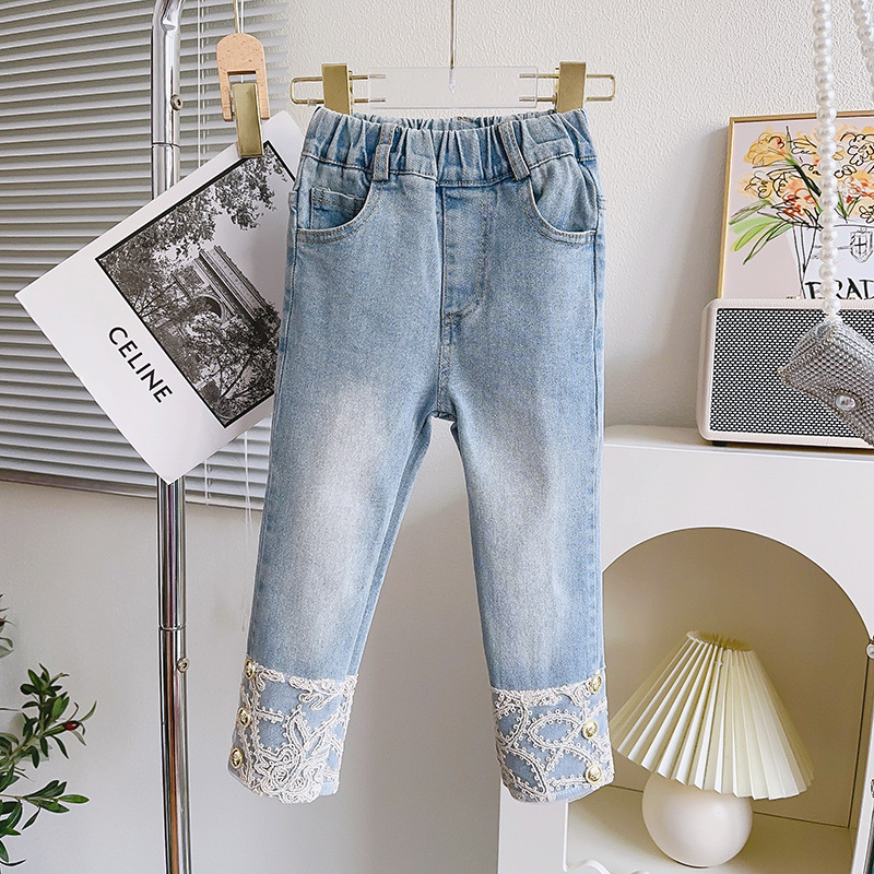 | nameOriginal | 2024 Korean style girls' slim fit western style casual trousers spring new western style fashionable baby girls' lace jeans |