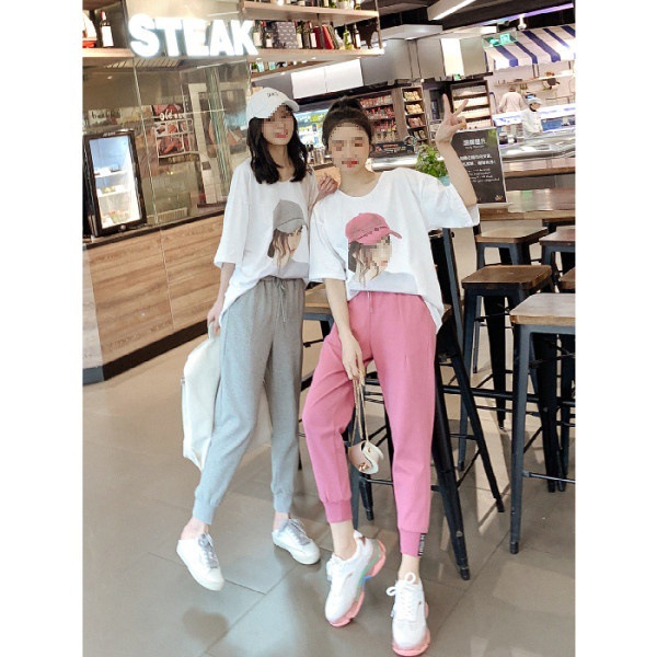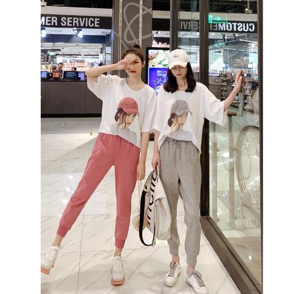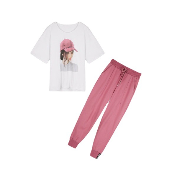 | nameOriginal | 2024 large size women's summer fashion casual western style suit age-reducing cartoon printed T-shirt trousers wholesale two-piece set |