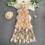 | nameOriginal | 2024 Light Luxury French Sleeveless Three-dimensional Flower Halter Neck Off-Shoulder Dress for Women on Vacation, High-Quality Temperament Long Dress for Women |