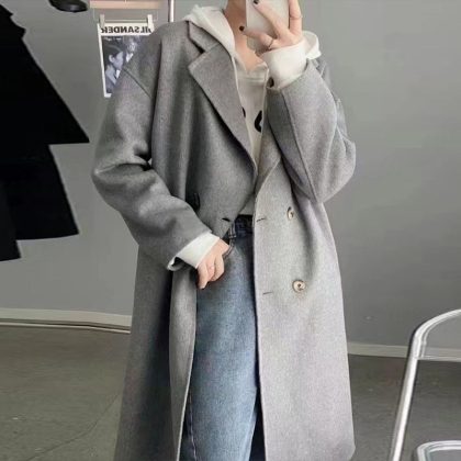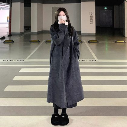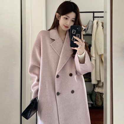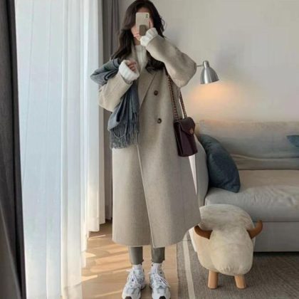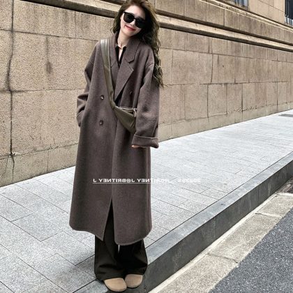 2024 Maillard cotton and thickening Long Woolen Coat Women’s Autumn and Winter Small Net Red Hepburn Woolen Coat