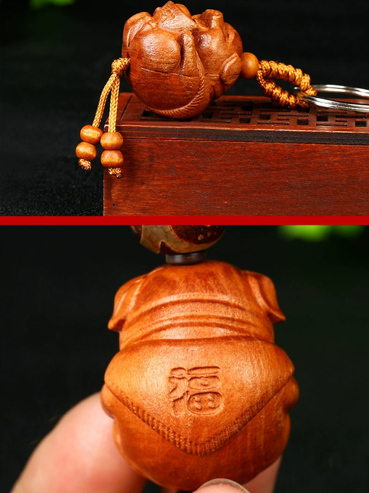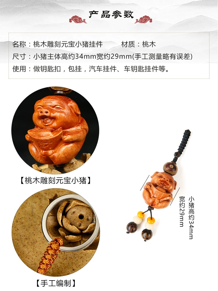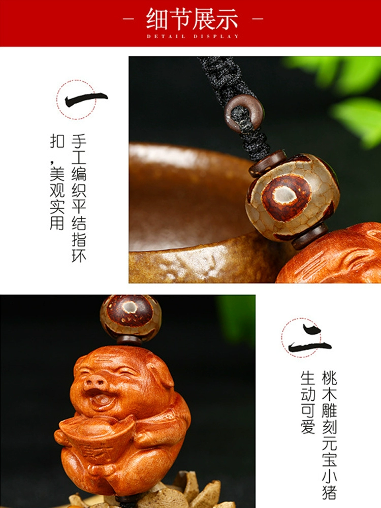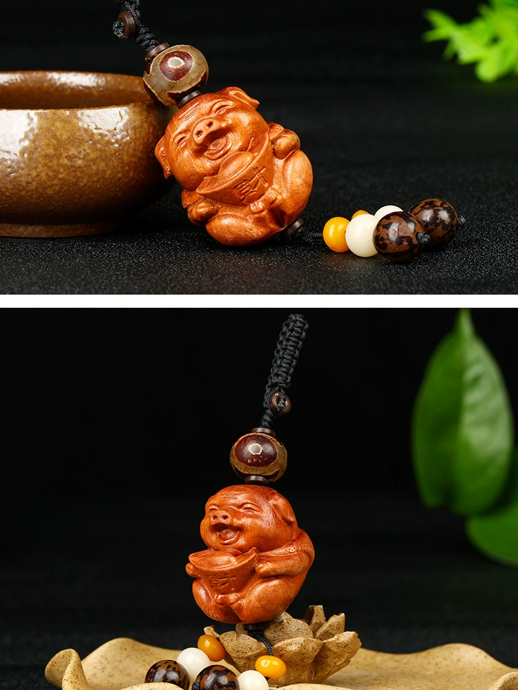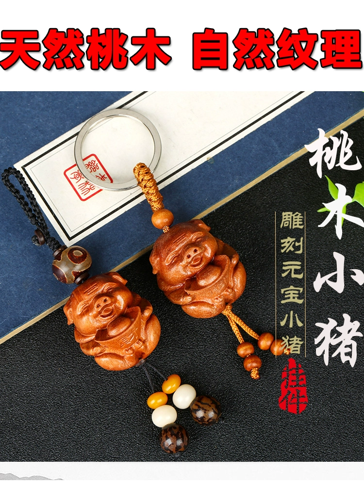 2024 mascot pig peach wood carving ingot smiley face piggy mobile phone chain car key chain pendant pendant rosewood
