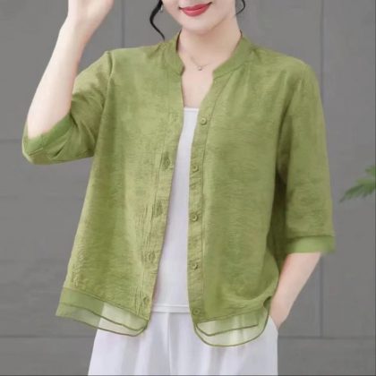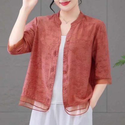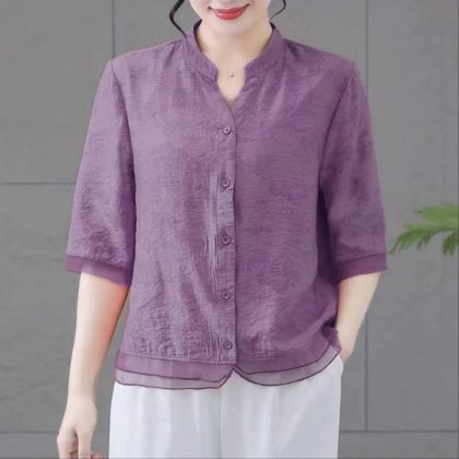 | nameOriginal | 2024 Mother Dress Fashion Thin Casual plus size Shirt Summer New Shirt Slimming Collar Sleeve Top |