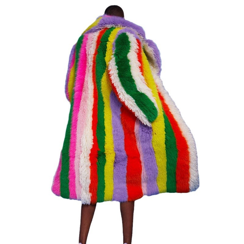 | nameOriginal | 2024 new Amazon cross-border European and American trend women's fashion coat fur collar stitching color imitation fur coat |