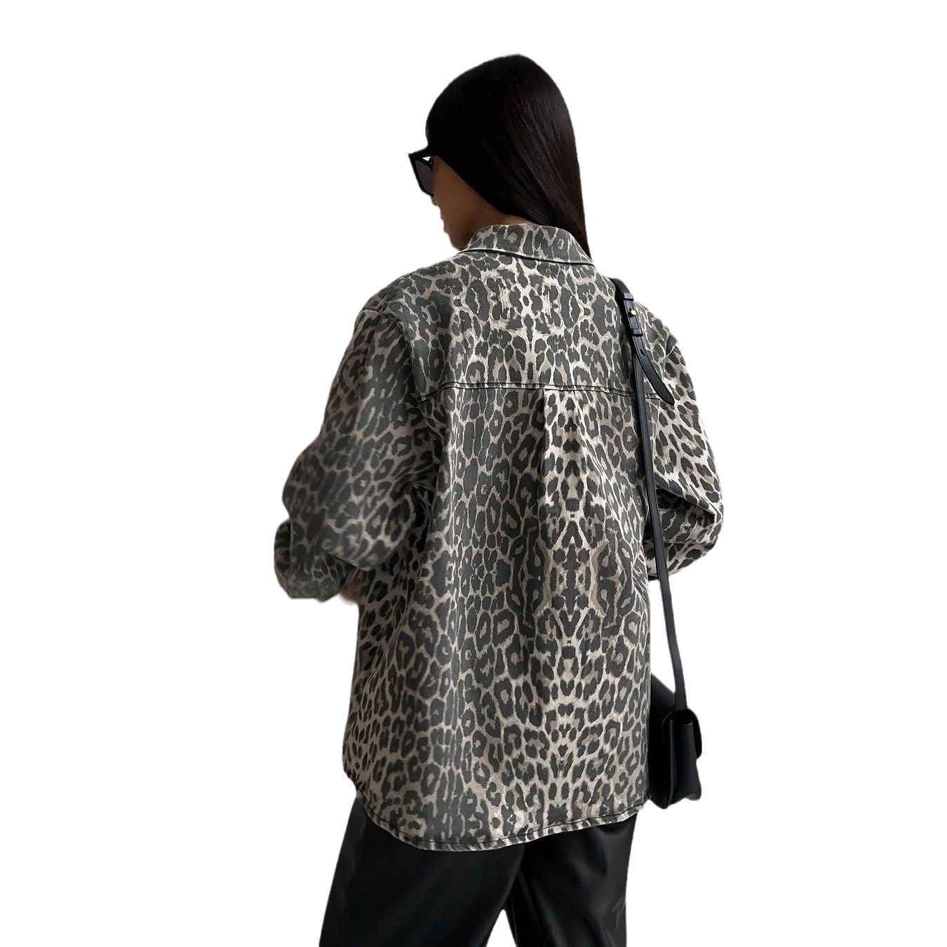 | nameOriginal | 2024 New American Style Retro Leopard Print Niche Lapel Denim Jacket Spring Fashionable Loose All-match Fashionable Jacket |