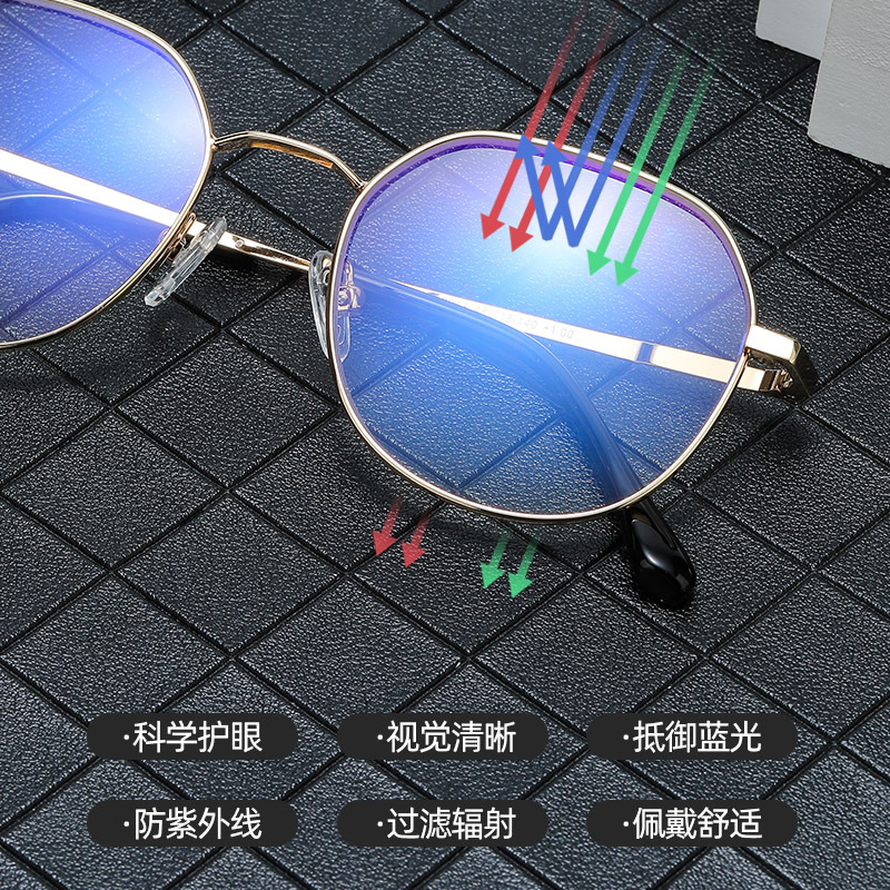 | nameOriginal | 2024 new anti-blue light reading glasses metal frame goggles fashion trend men's and women's flat glasses manufacturers wholesale |