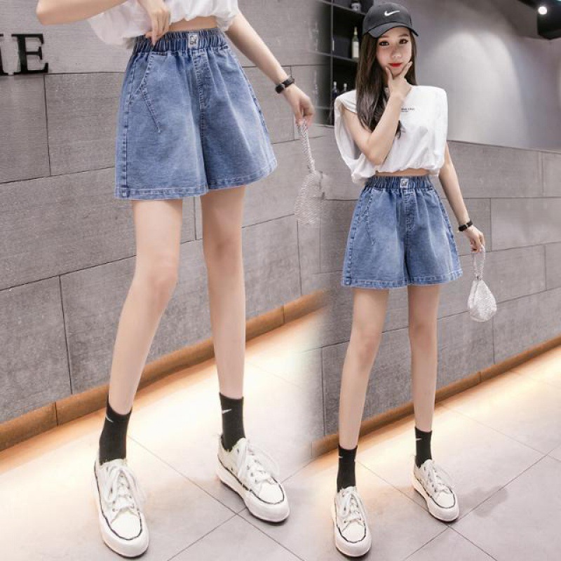 | nameOriginal | 2024 new arrival chubby girl plus size elastic waist thin Denim shorts women's loose Korean high waist A- line wide leg hot pants |