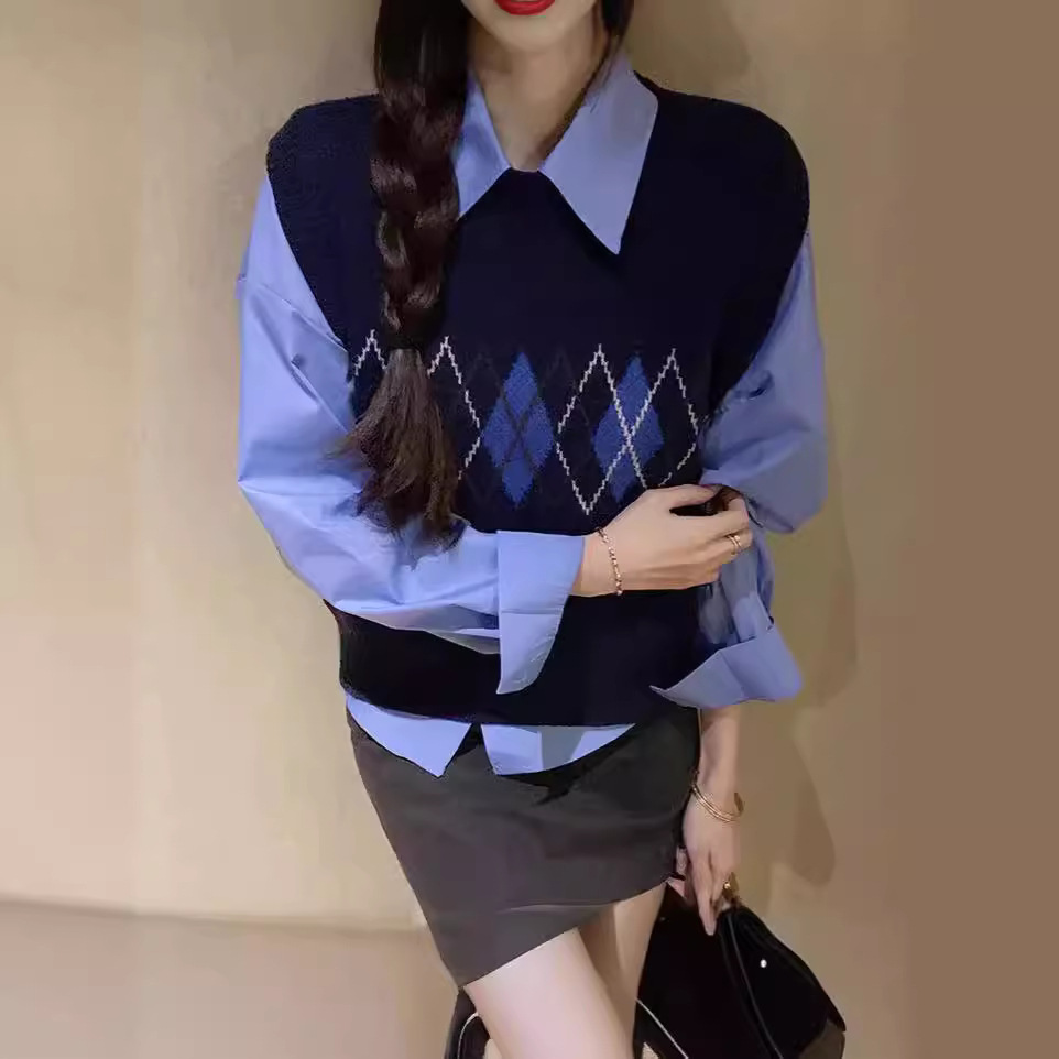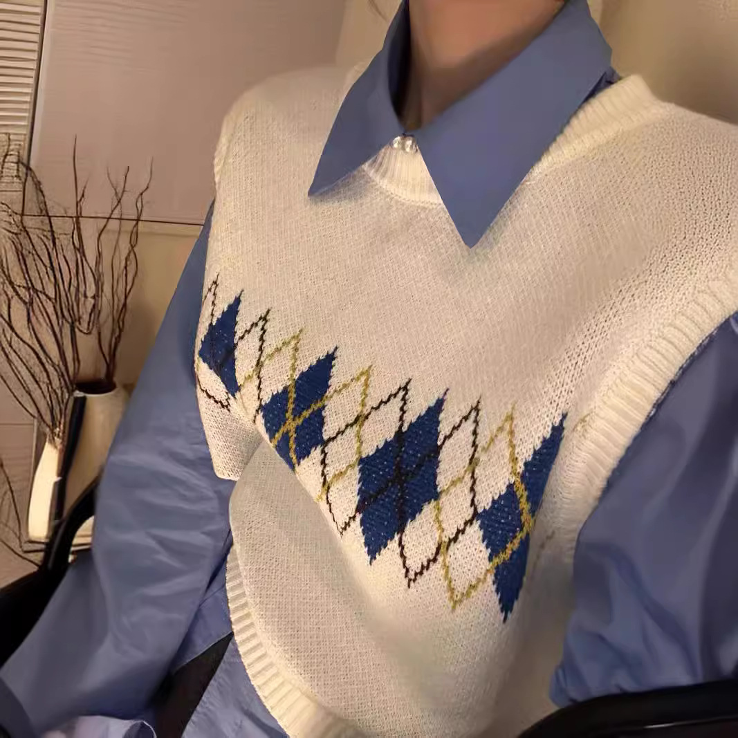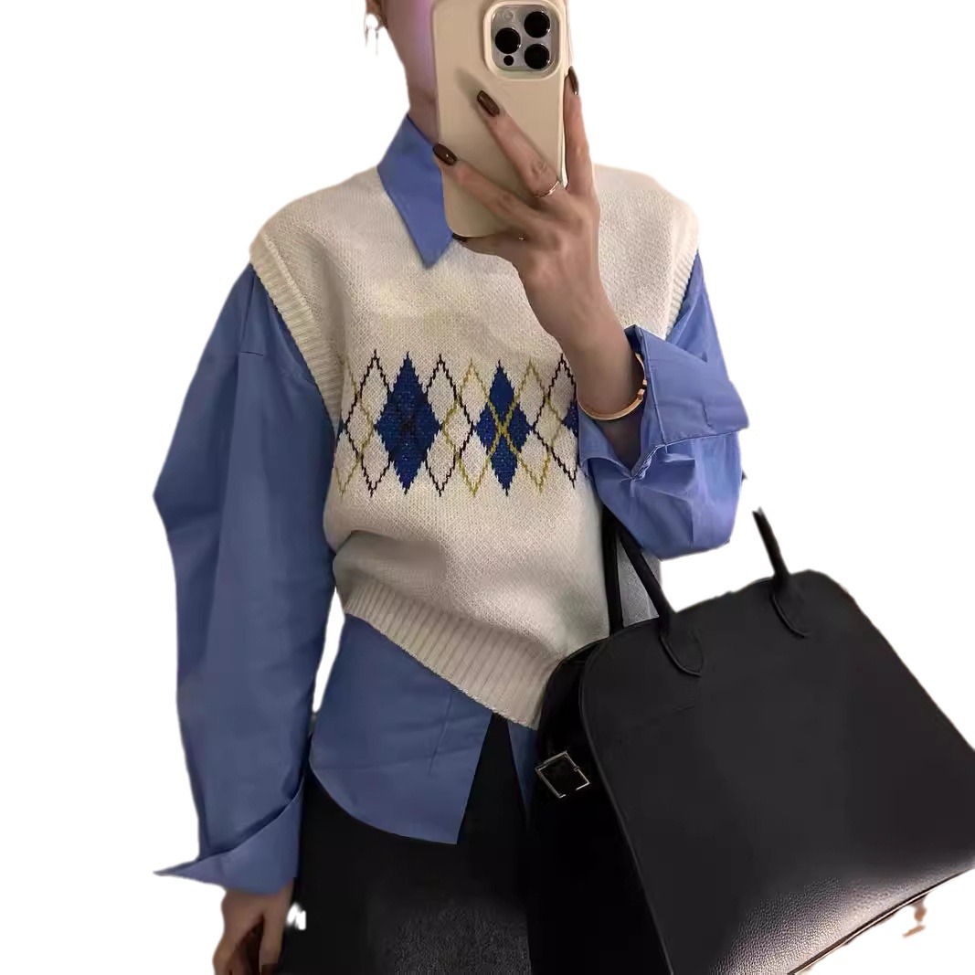 | nameOriginal | 2024 New Arrival Rhombic Contrast Color Knitted Vest Women's Retro Casual Loose Style All-match Sleeveless Vest Top |