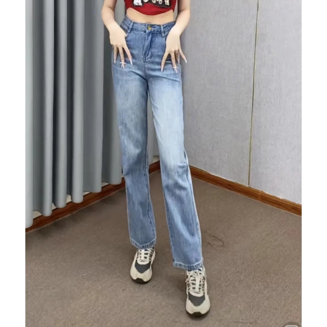 | nameOriginal | 2024 New Arrival Ripped Straight Leg Jeans Women's Spring and Summer New Arrival Fashionable Slimming Design Sense Loose Wide Leg Pants |