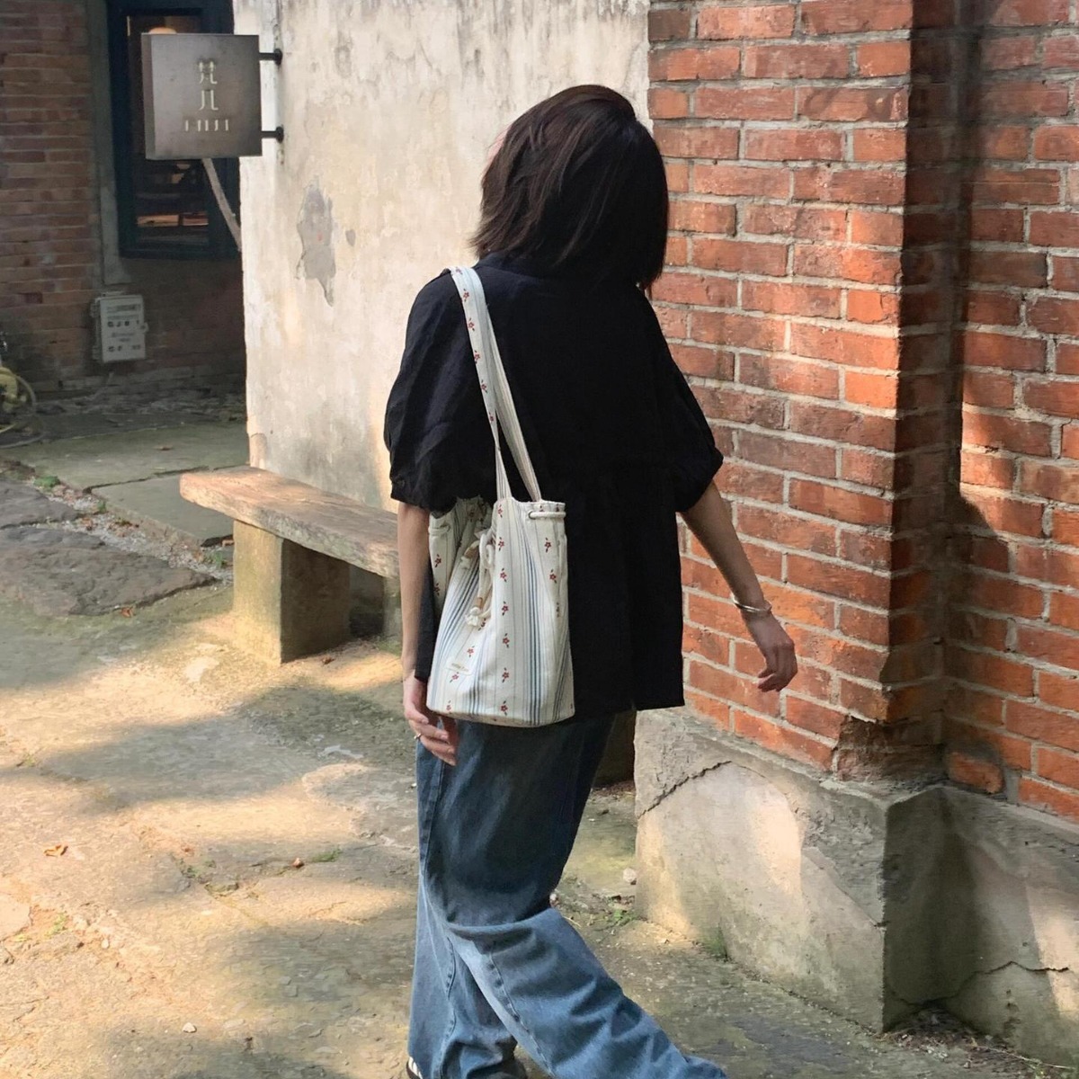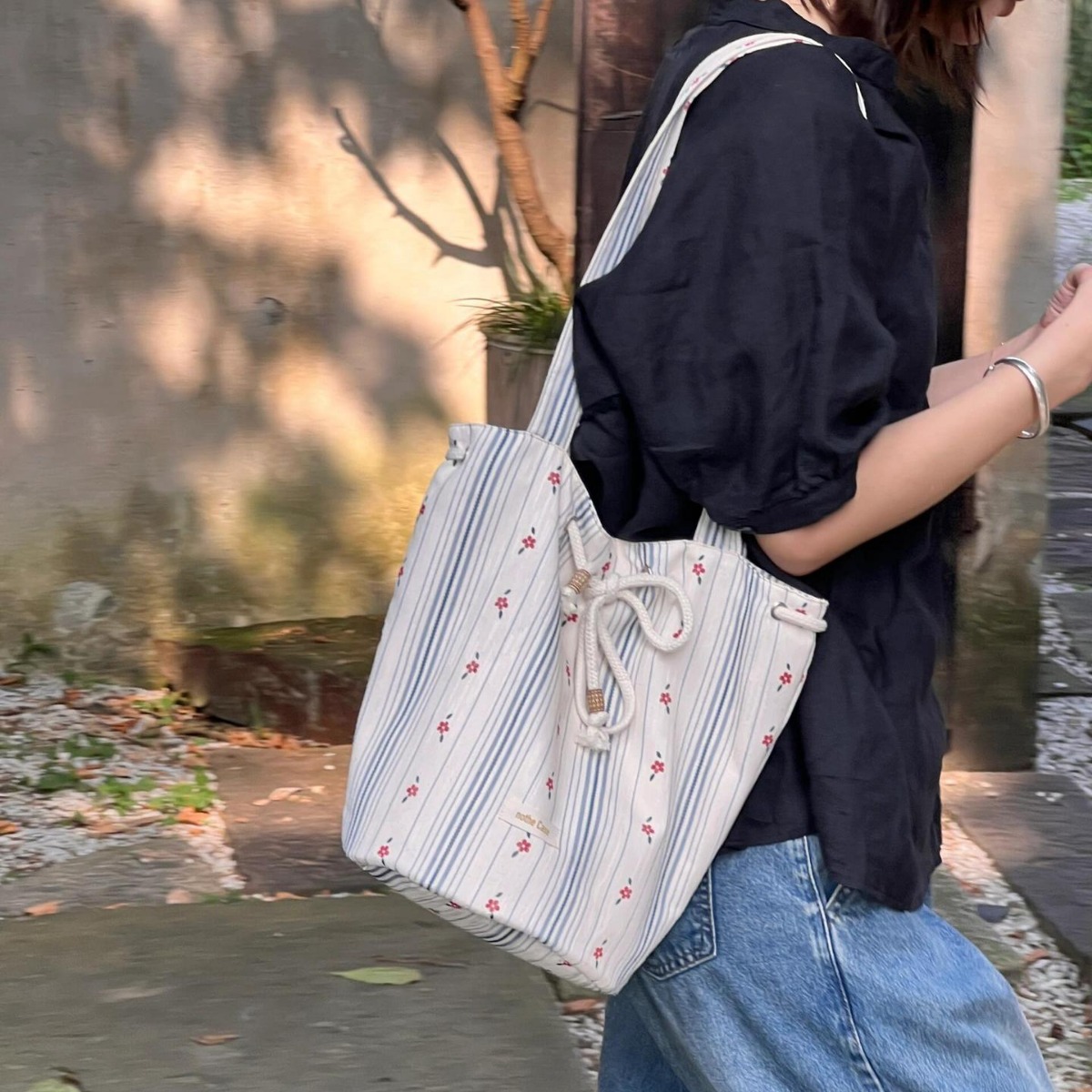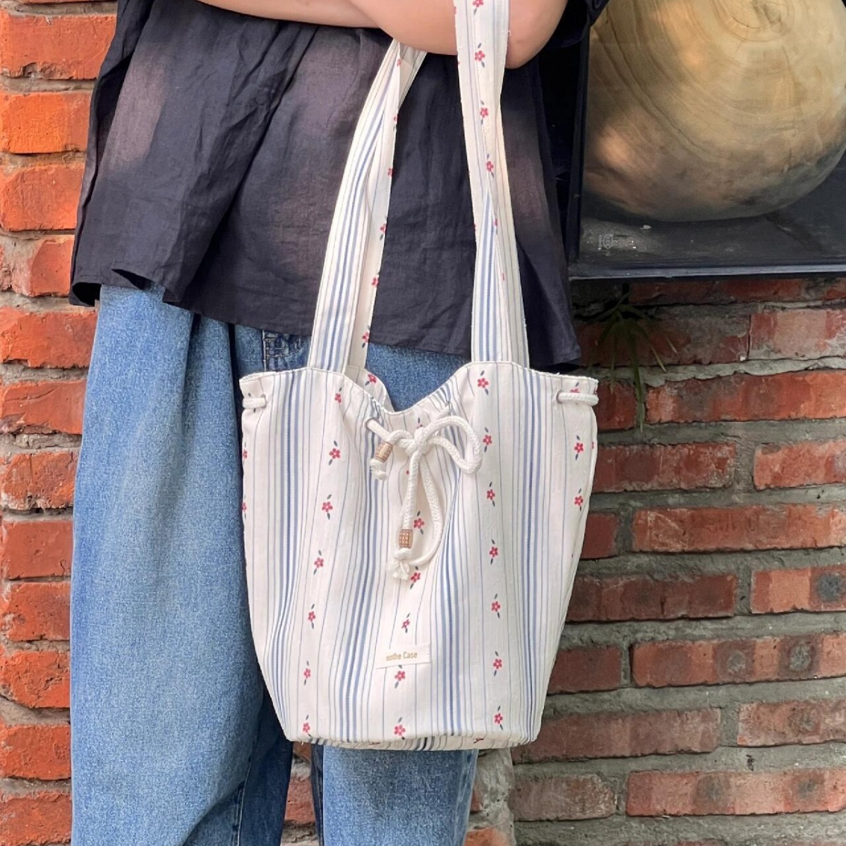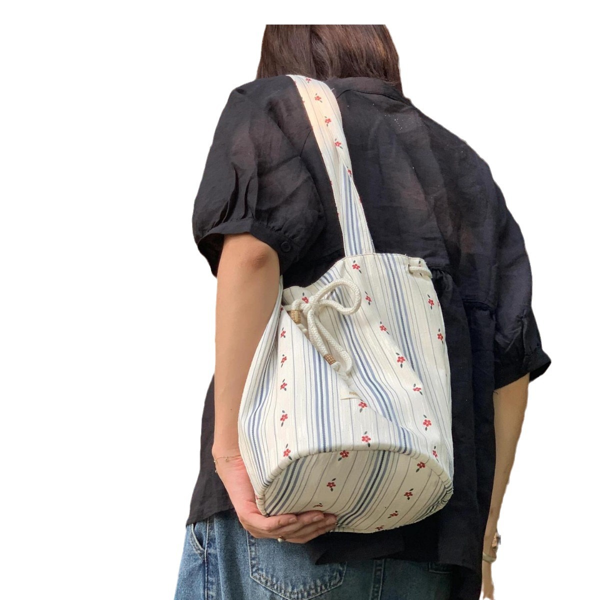 | nameOriginal | 2024 New Arrival South Korea Striped Floral Drawstring Summer Canvas Bag Underarm Bucket Women's Plant Style Shoulder Tote Bag |