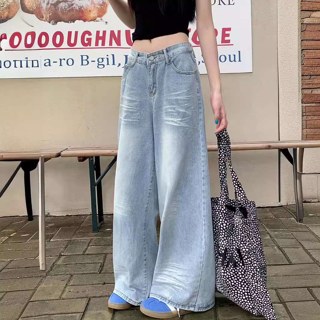 | nameOriginal | 2024 New Arrival Washed Hand-held Cat-whisker Jeans Women's High Street Straight Loose Slimming Wide-leg Pants Trendy |
