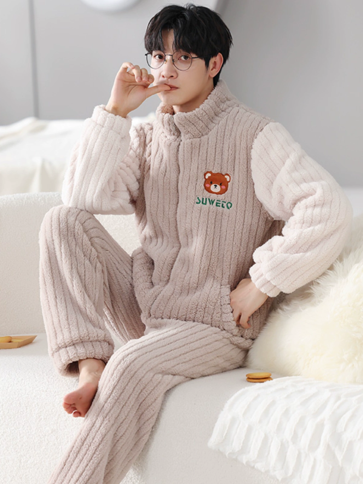 | nameOriginal | 2024 new autumn and winter pajamas for men and winter teenagers coral velvet thickened and velvet can be worn outside home clothes set |