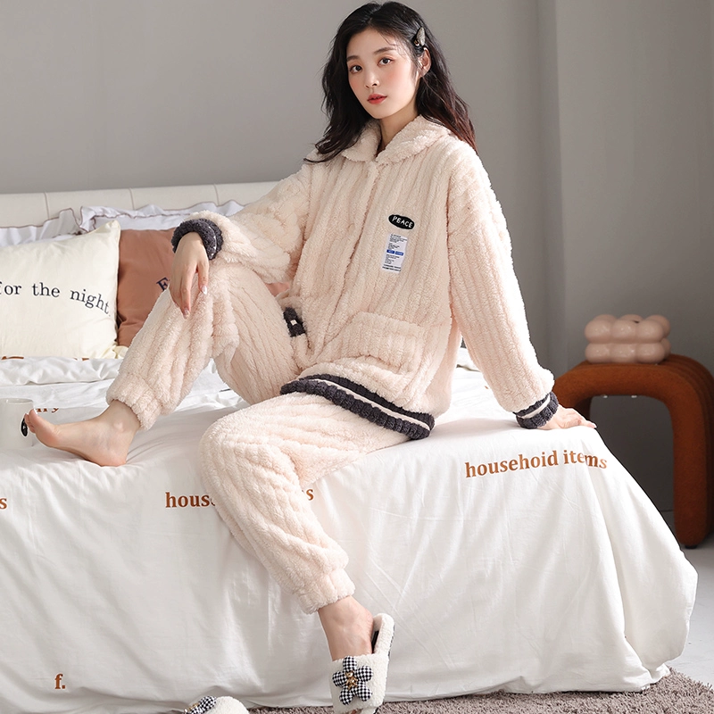 | nameOriginal | 2024 new autumn and winter pajamas for women winter coral velvet plus velvet thickened cardigan home wear set |