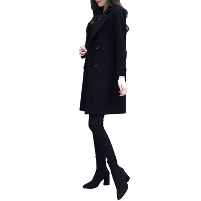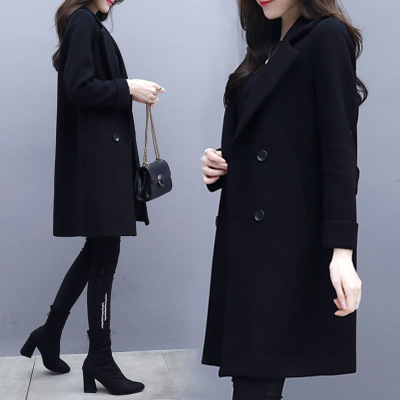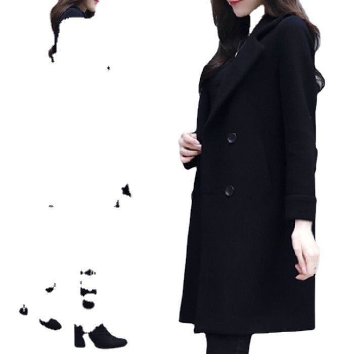 | nameOriginal | 2024 New Autumn and Winter Thickened Hepburn Style Pocket Woolen Coat Women's Black Slimming Mid-length Woolen Coat |