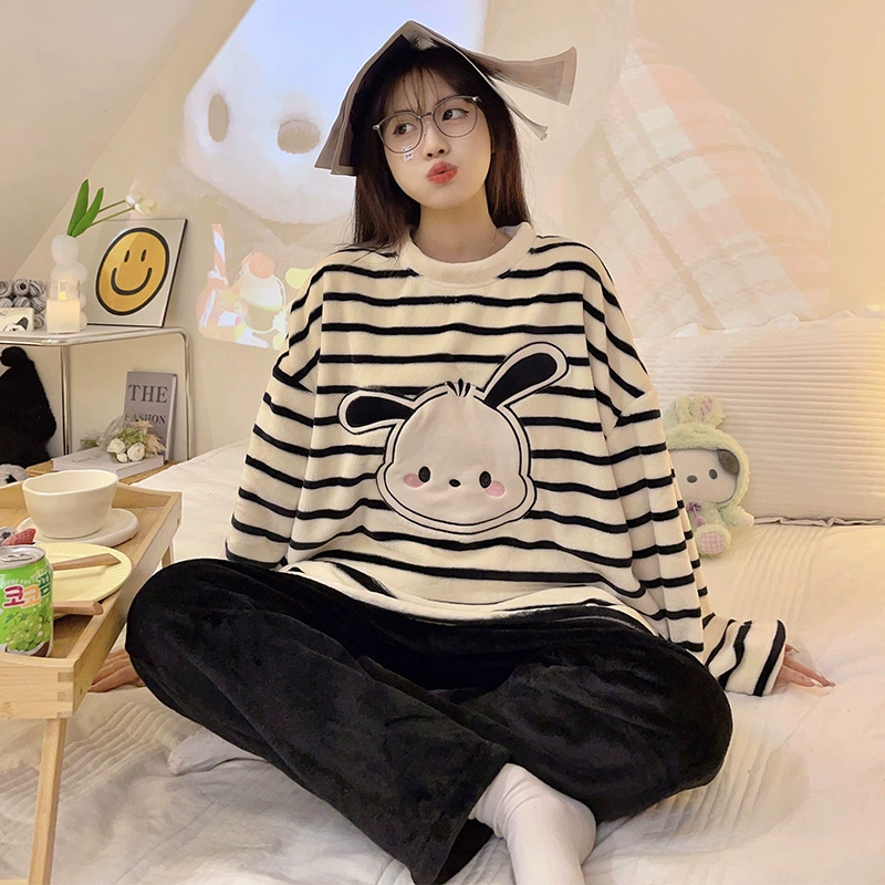 | nameOriginal | 2024 new autumn and winter velvet thickened coral velvet cute striped pajamas women's flannel suit home clothes |