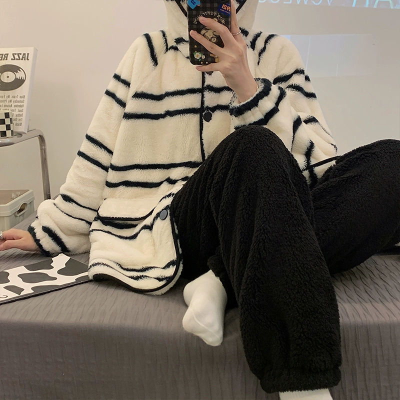 | nameOriginal | 2024 New Autumn and Winter Winter Pajamas Women's Coral Fleece Plush Thickened Cute Hooded Plush Suit Home Clothing |