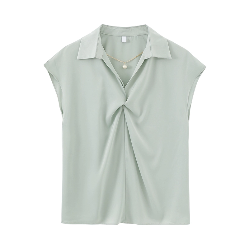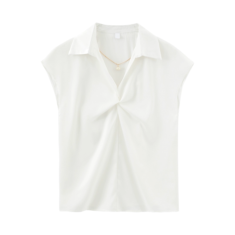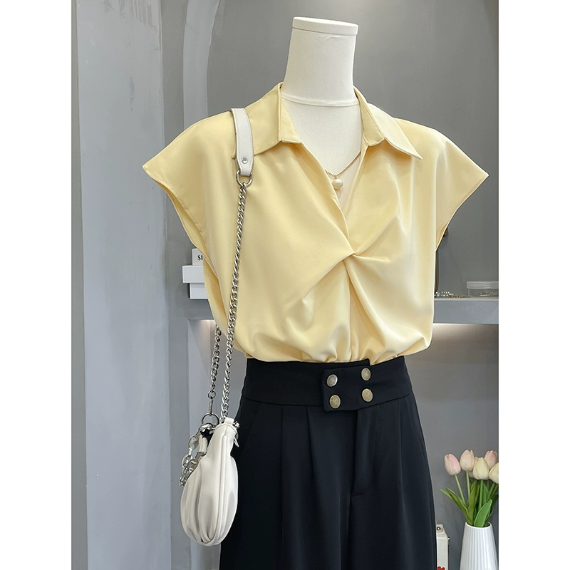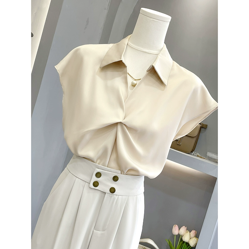 | nameOriginal | 2024 new belly-covering French design niche short-sleeved shirts temperament satin shirt sleeveless women's tops |
