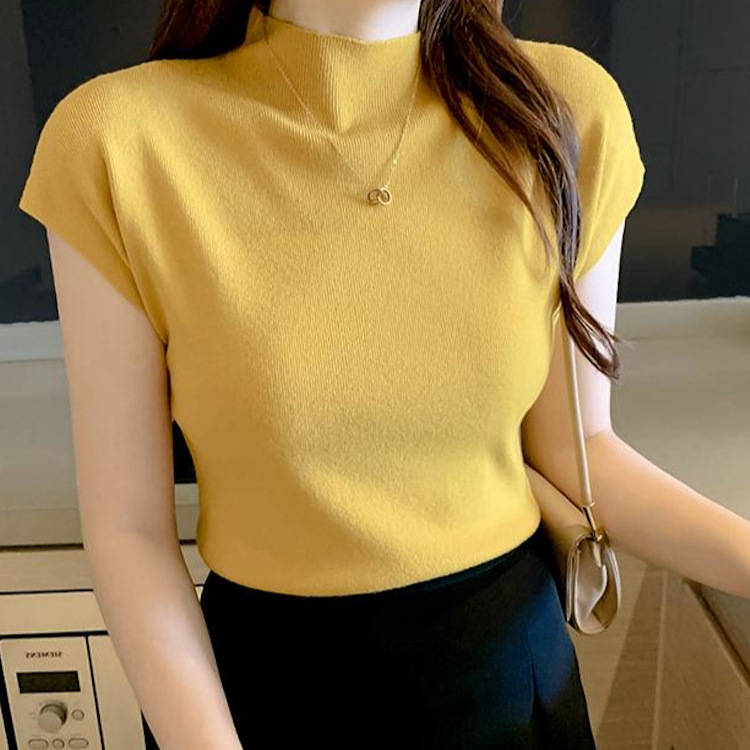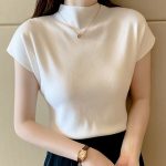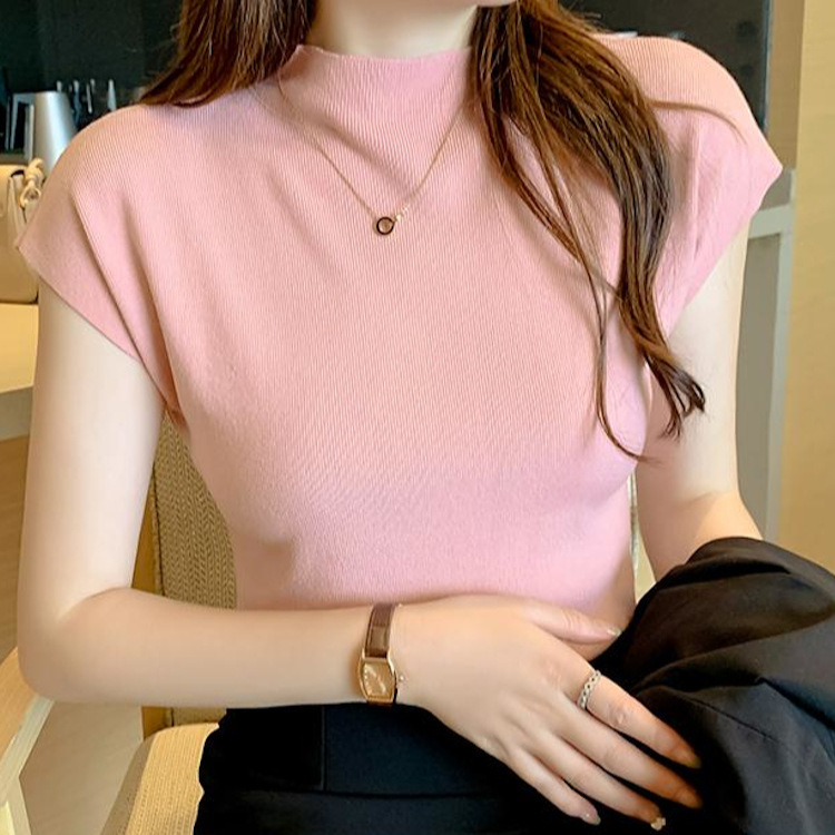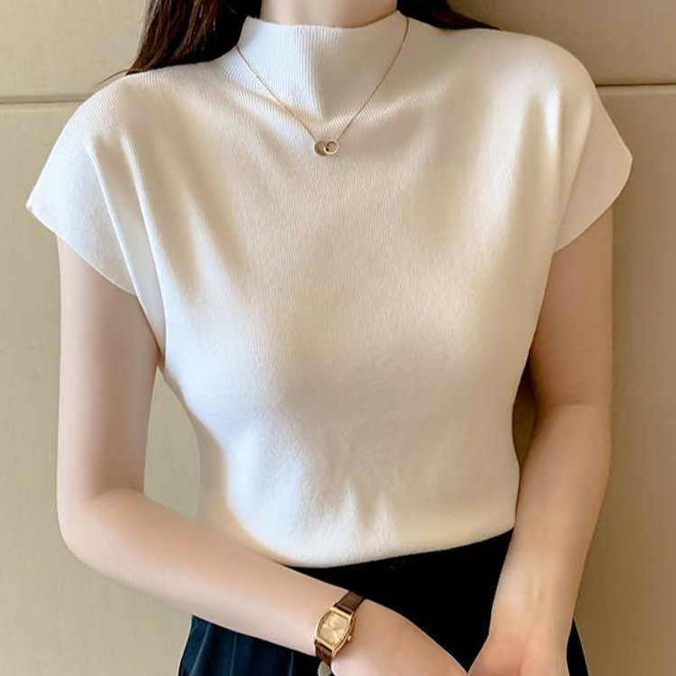 | nameOriginal | 2024 New Black Short-sleeved Knitted Women's New Summer Half-high Neck Short Ice Silk T-Shirt Top |