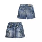 | nameOriginal | 2024 new black super tide brand nipple medieval printed rivet imitation denim shorts nipple children's shorts spot |