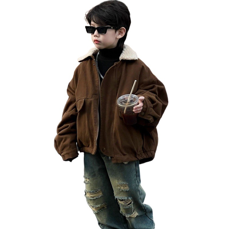 | nameOriginal | 2024 new boys' coat Winter Children's thickened furry jacket winter Korean style retro fleece-lined lapel top |