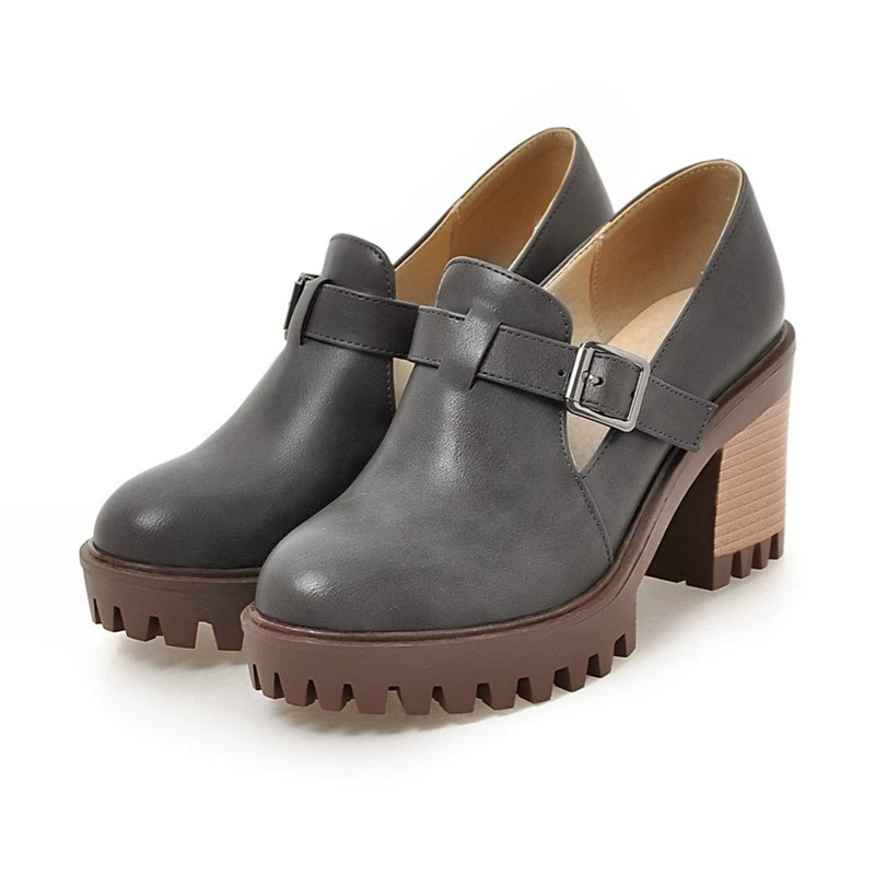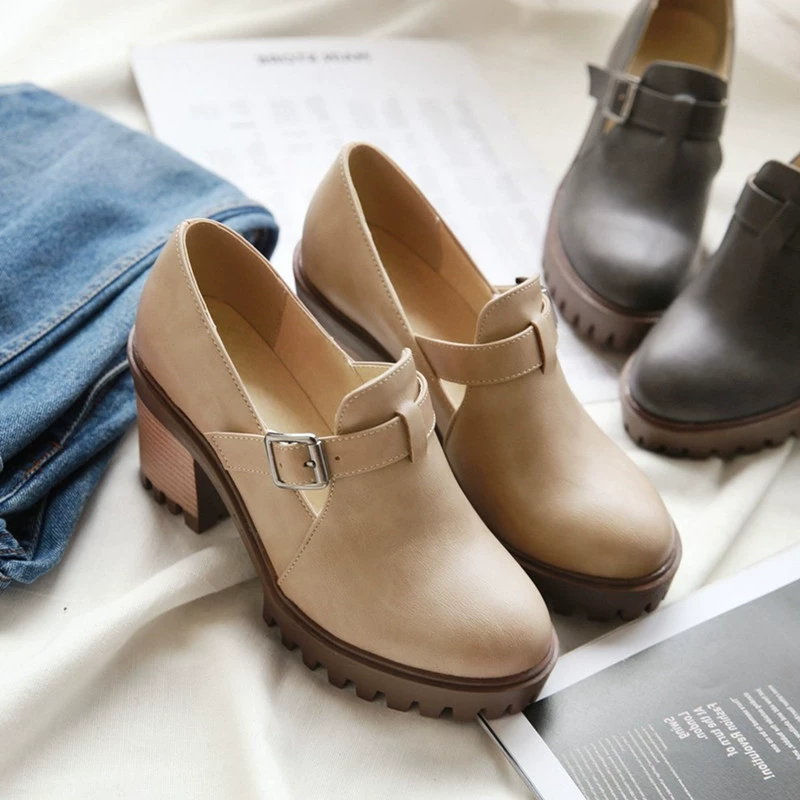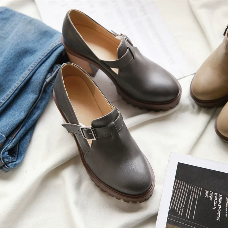 2024 new British retro fashion thick-soled small leather shoes, versatile waterproof platform buckle straps, thick high heels, large size women's single shoes