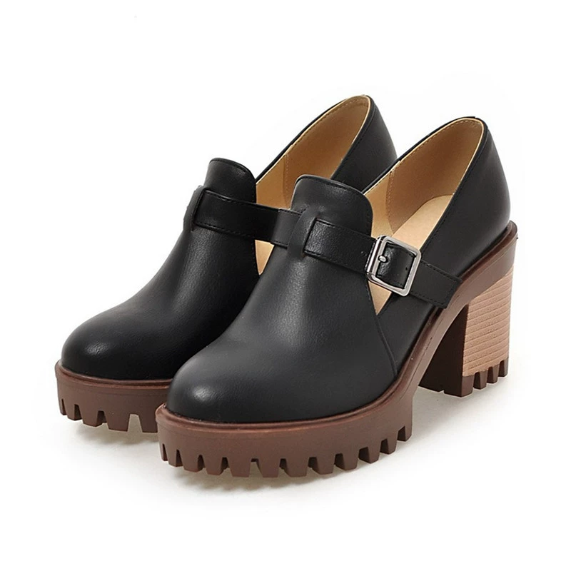 2024 new British retro fashionable thick-soled leather shoes versatile waterproof platform buckle thick high heel large-size women’s single shoes