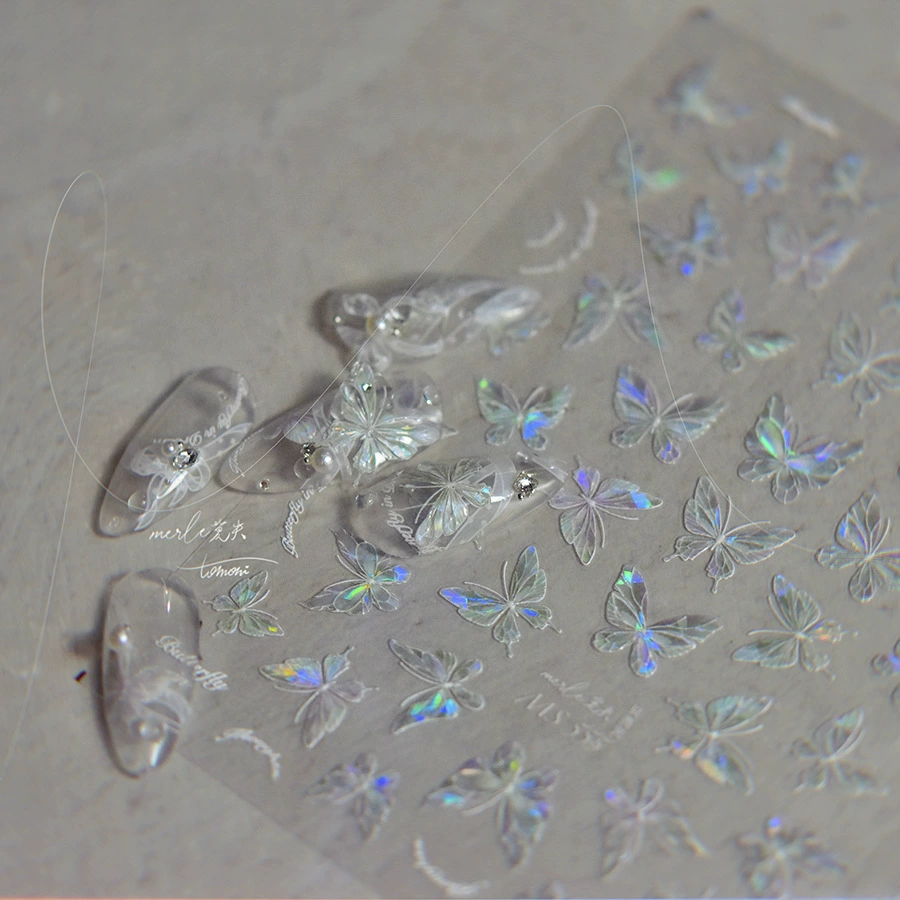 | nameOriginal | 2024 New Butterfly Nail Art Sticker Internet Celebrity 5D Three-dimensional Relief Adhesive Shell Light Inlaid Diamond Butterfly Nail Decal |