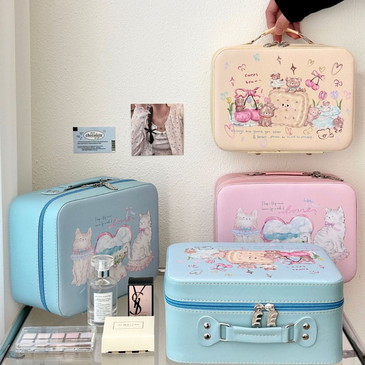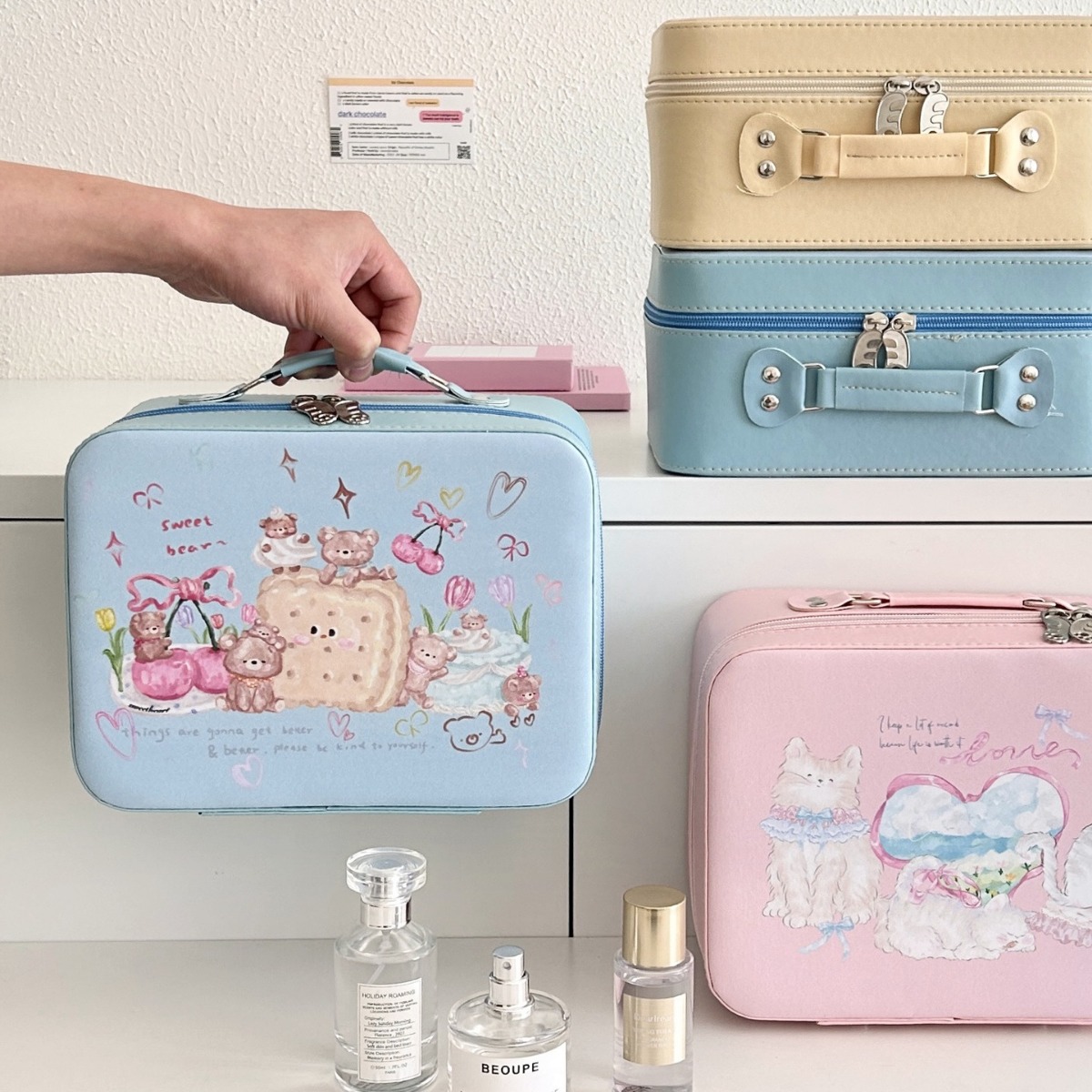 | nameOriginal | 2024 New Cartoon Illustration Cosmetic Case High Color Value Large Capacity Portable Skin Care Storage Suitcase Cosmetic Bag |