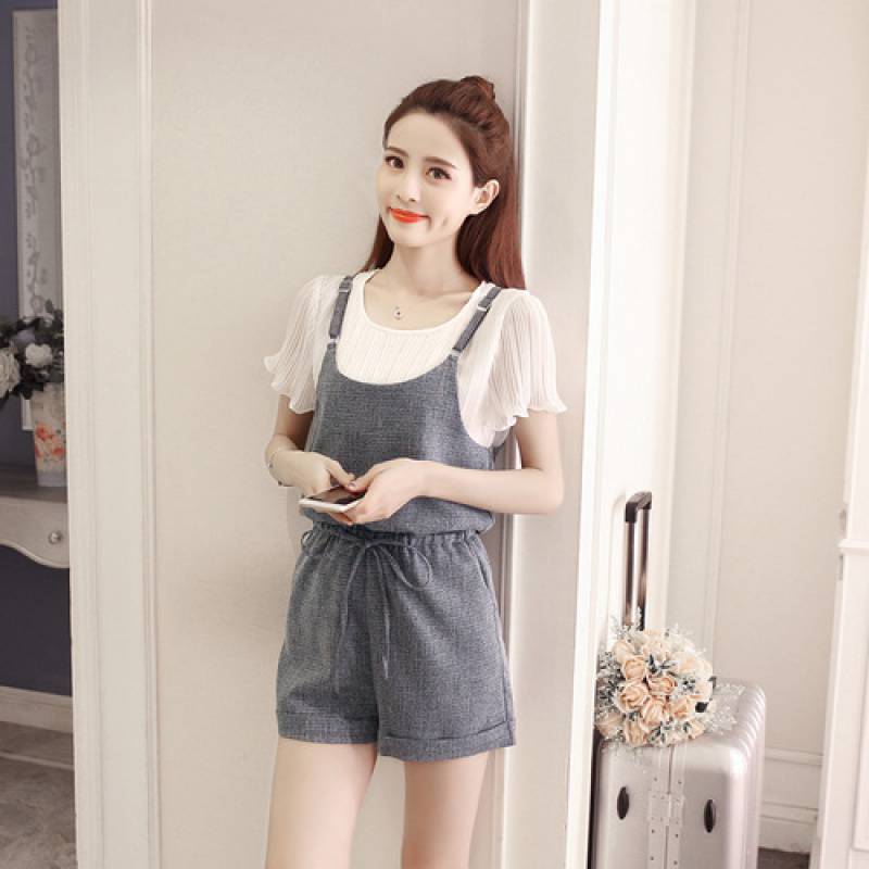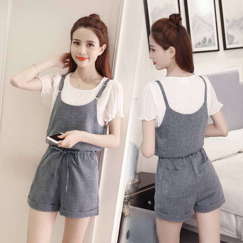 2024 New Casual Overalls suit Women's Summer Loose Chiffon Elegant Shorts Two-Piece Jumpsuit