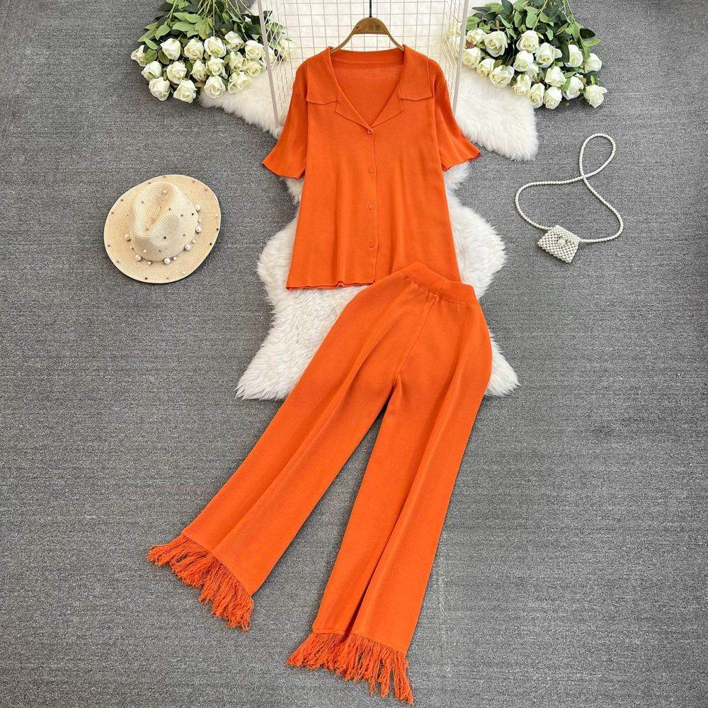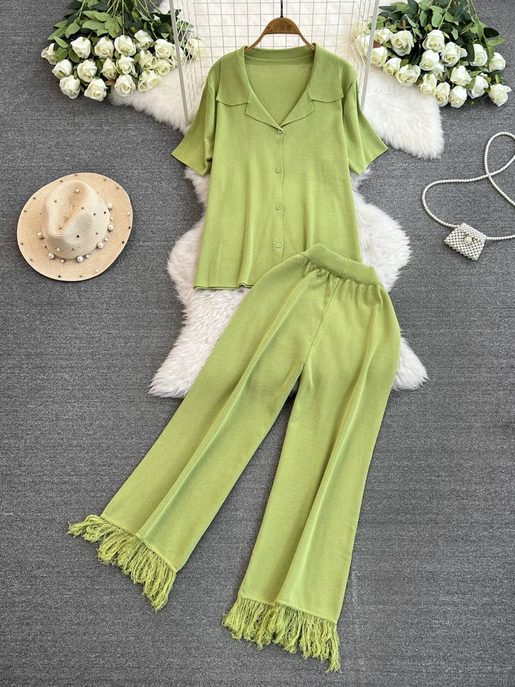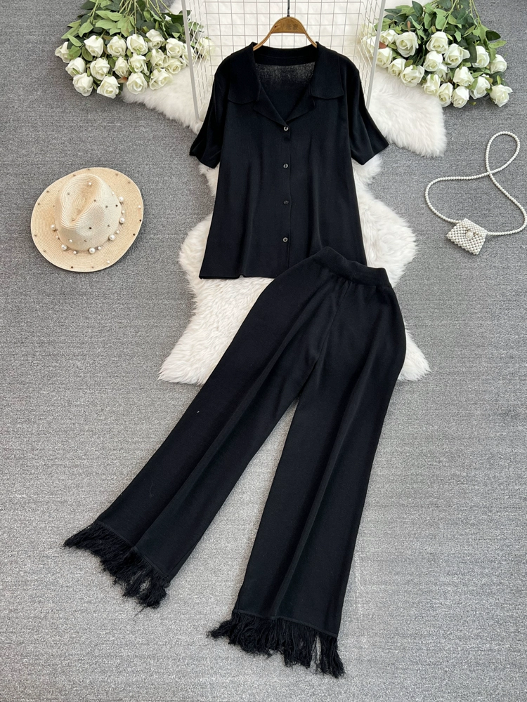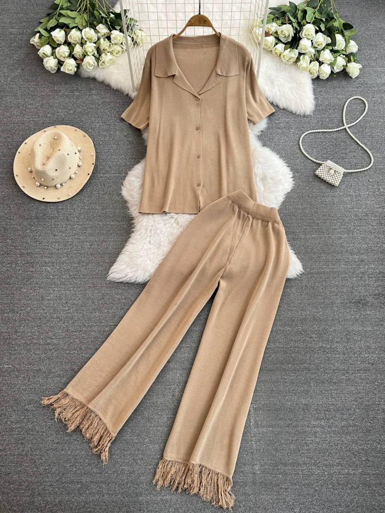 | nameOriginal | 2024 new casual versatile suit for women, age-reducing tassels, loose wide-leg pants, lapel short-sleeved sweater two-piece set |