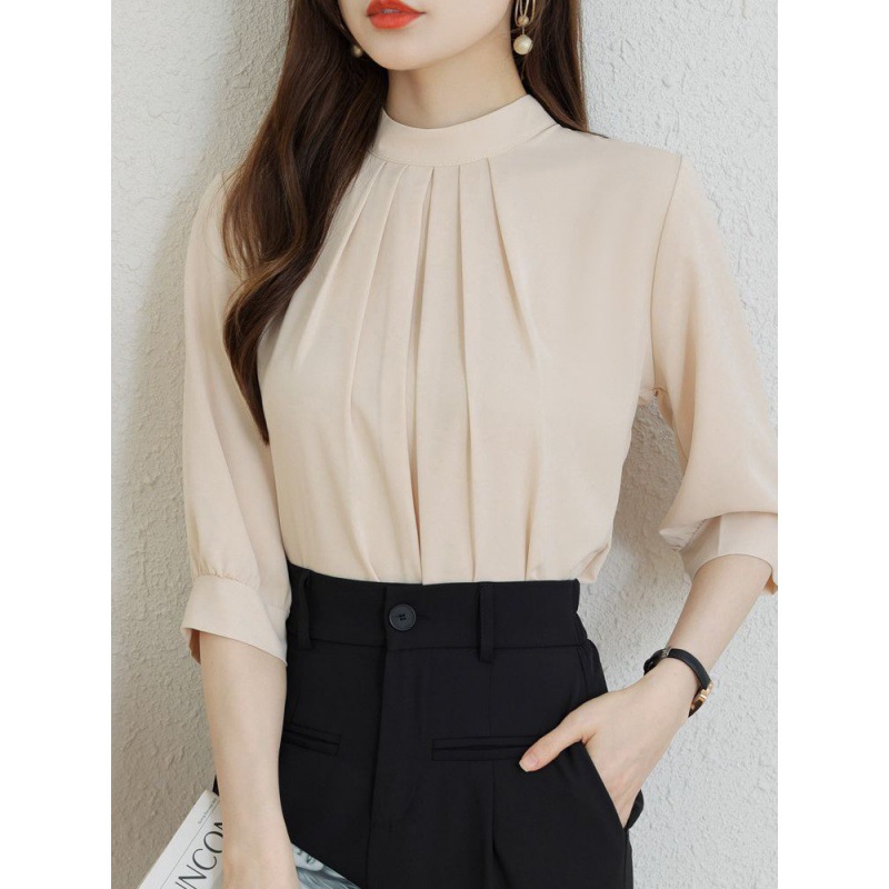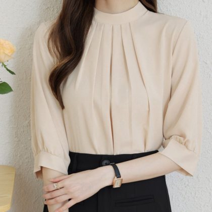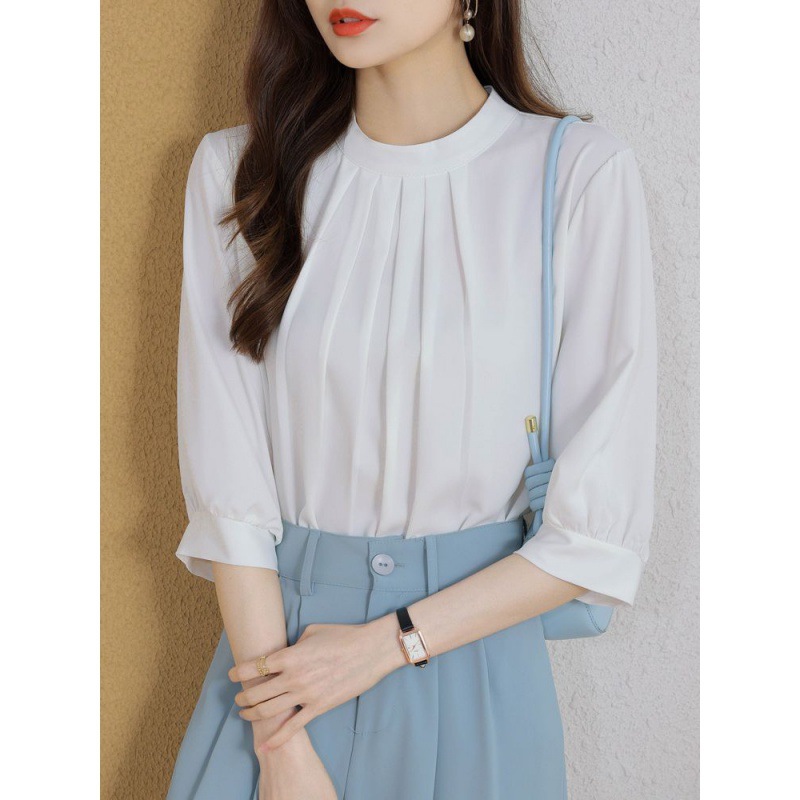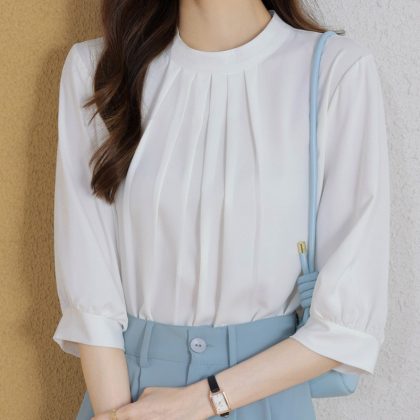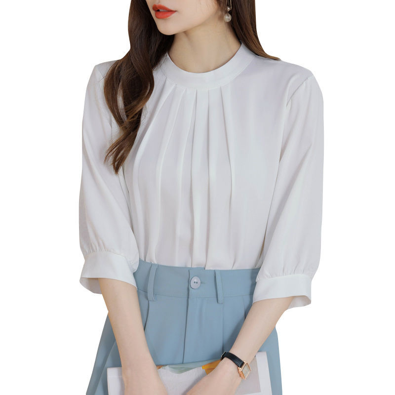 | nameOriginal | 2024 New Chiffon Shirt Korean Commuter Workplace All-match Round Neck Elegant Short-sleeved Thin Half-sleeved Shirt |